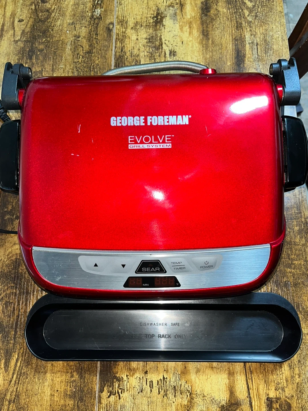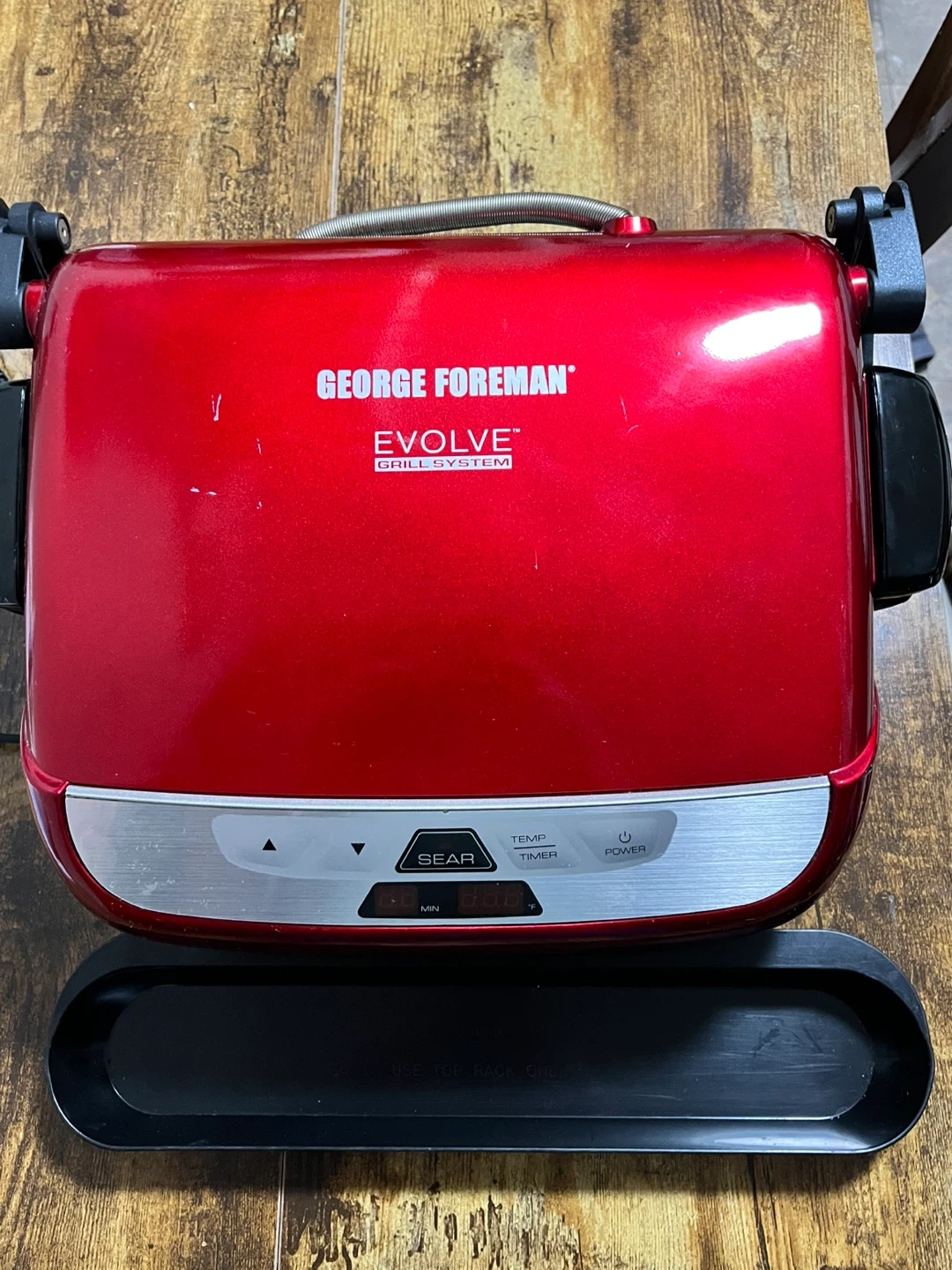 Selling a George Foreman Evolve Grill System in red! It's in great shape and ready for your kitchen. This grill system is perfect for making quick and healthy meals. It comes with a drip tray that is dishwasher safe for easy cleanup