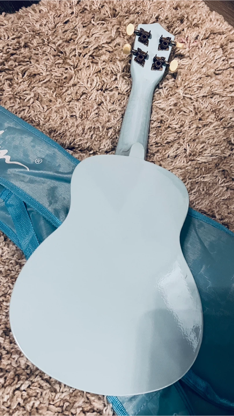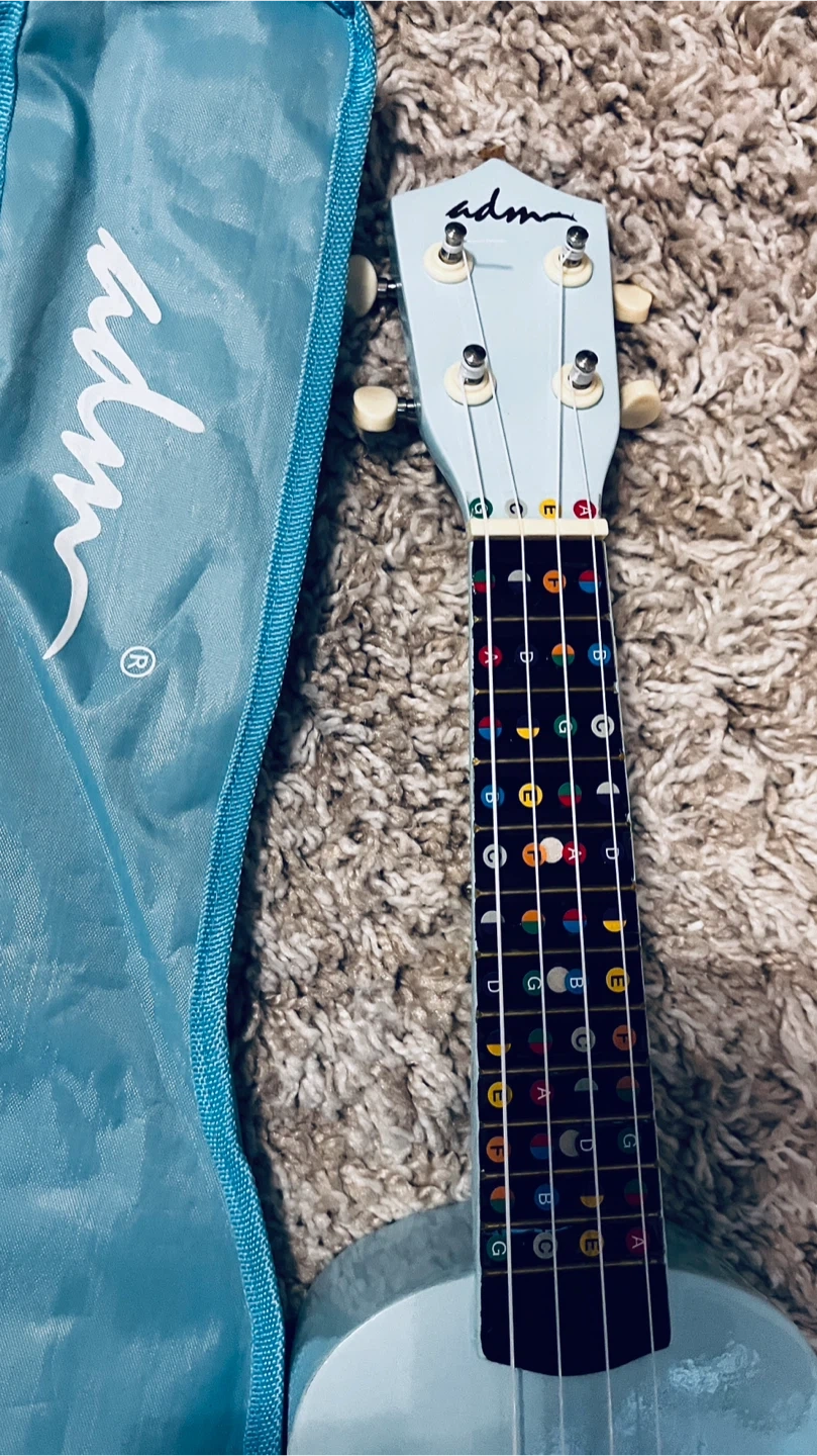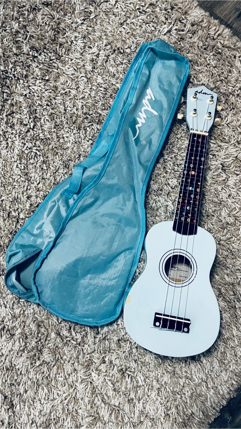 Selling a light blue ADM Soprano Ukulele! It comes with a matching carrying bag, perfect for taking it on the go. Great for beginners or anyone looking for a fun, portable instrument.