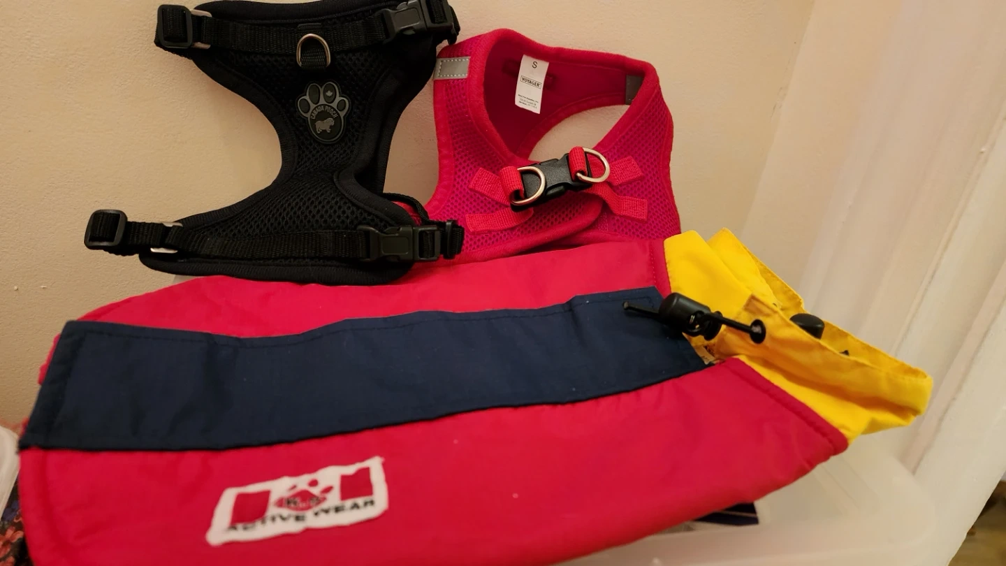 Dog Jacket+ 2 Dog Harnesses & 5 diapers- 40 pads– Small