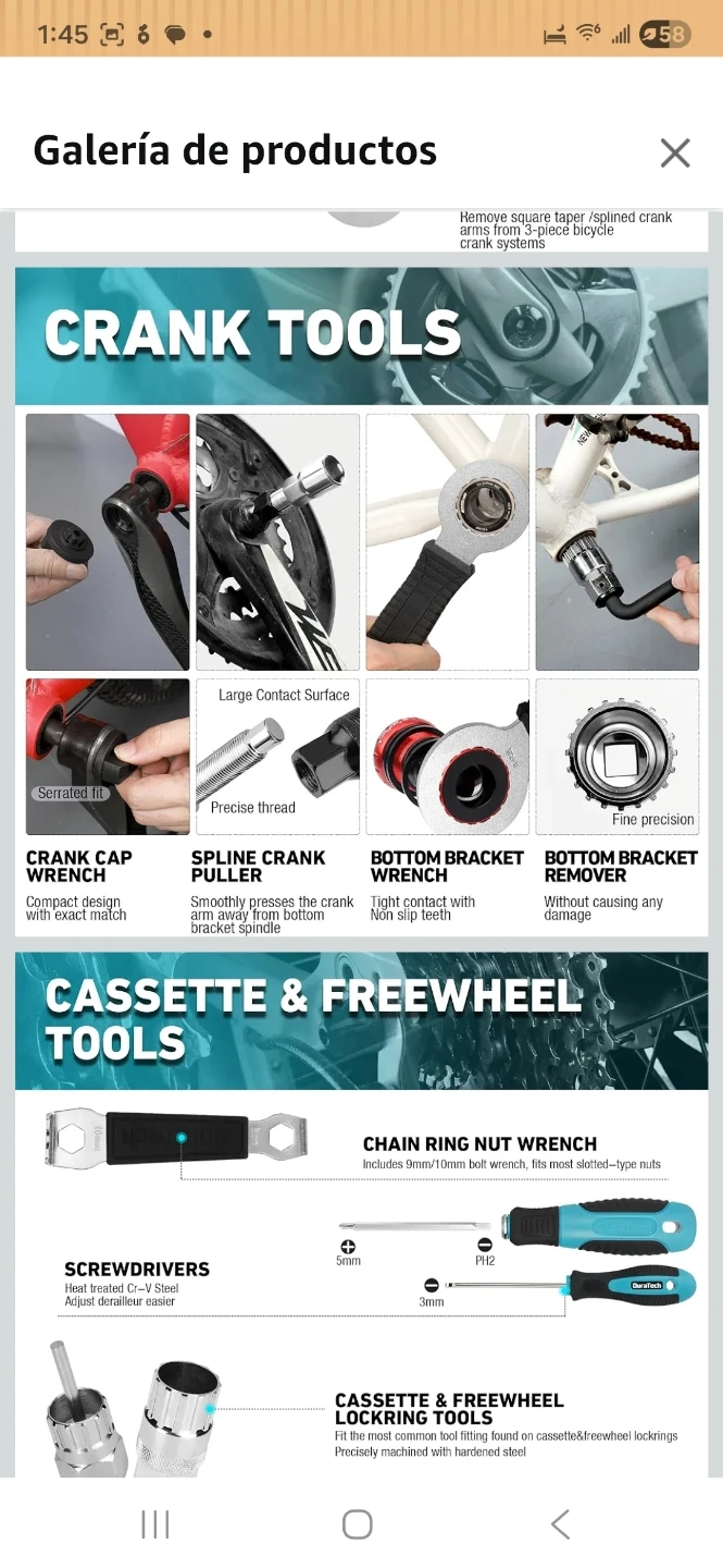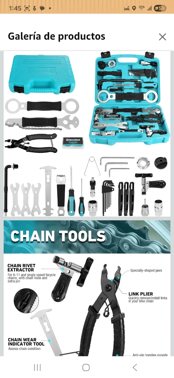 Selling a DuraTech 41-piece bicycle repair tool kit! It includes a variety of tools for bike maintenance and repairs, all neatly organized in a blue carrying case. The kit features tools for crank removal, chain repair, tire levers, spoke adjustment, and more. Perfect for any cyclist looking to keep their bike in top condition