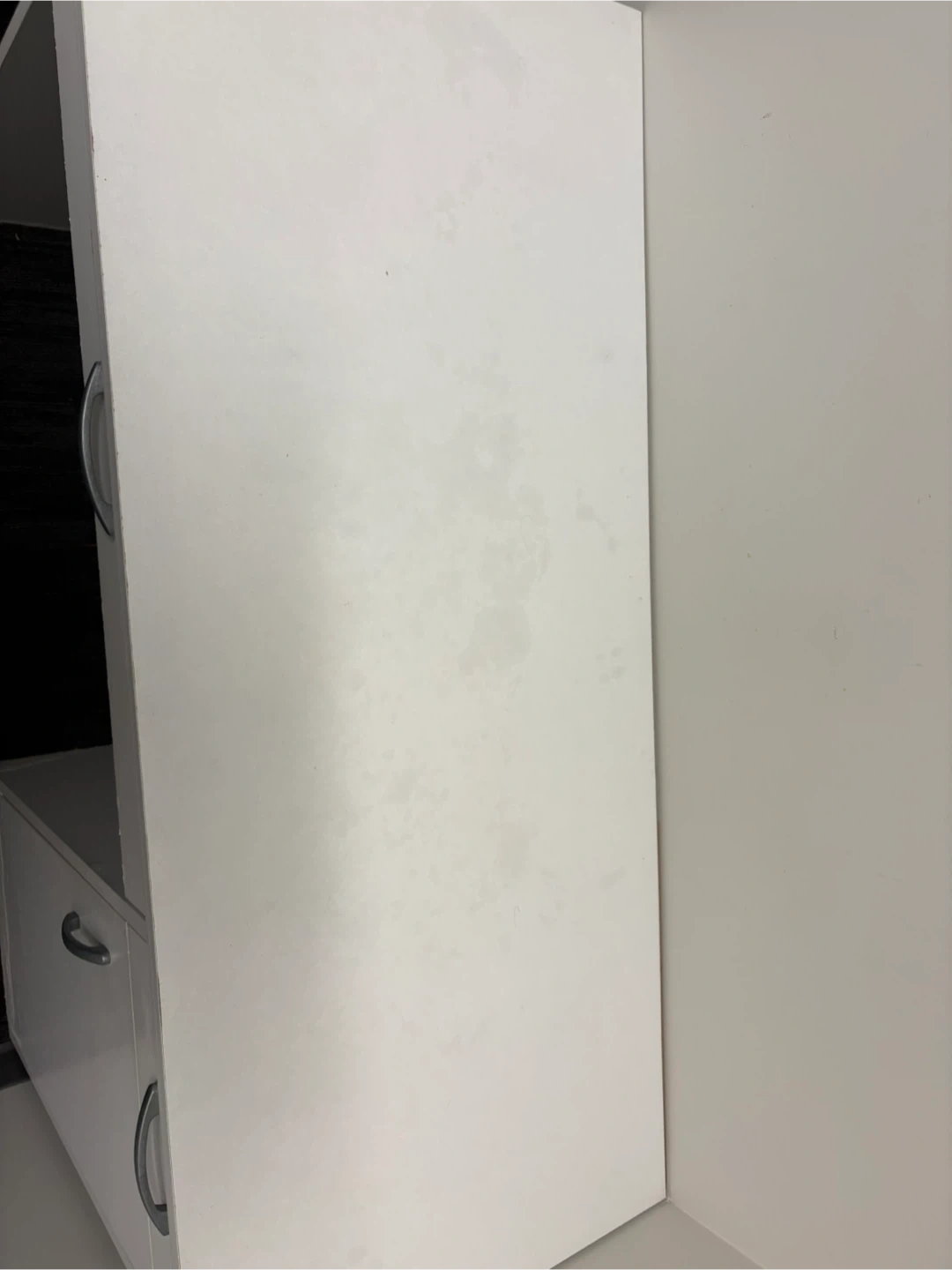 Selling a white desk that's perfect for a home office or study space. It features a handy drawer and a cabinet for extra storage. There are some signs of wear and tear on the bottom, as shown in the pictures.
