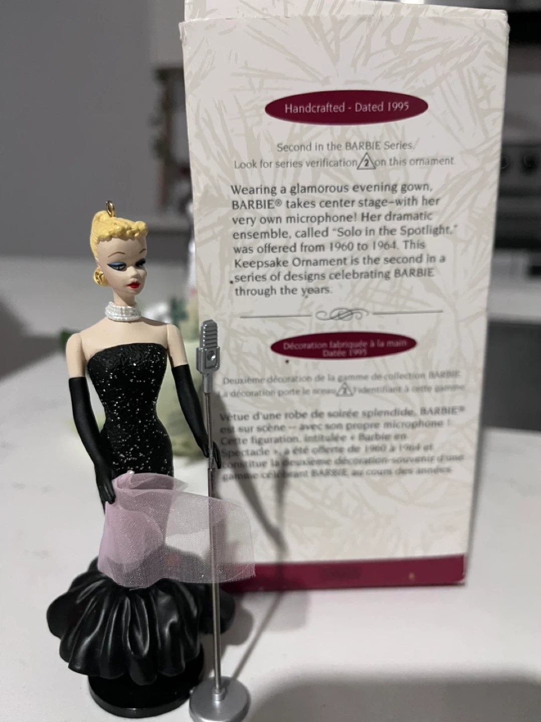 Selling a Hallmark Keepsake Barbie ornament from 1995. This is the "Solo in the Spotlight" ornament, second in the Barbie series. It's in great condition and comes with the original box!