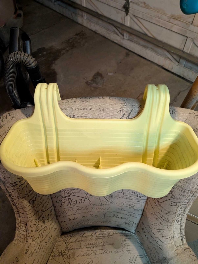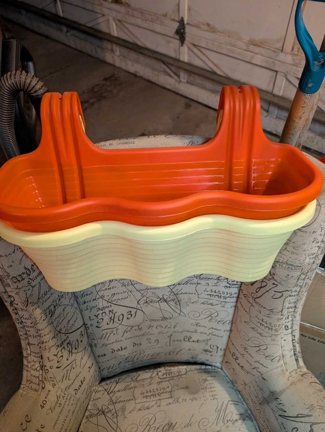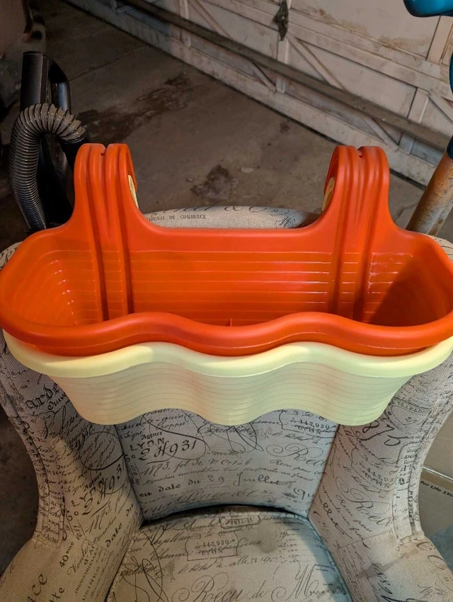 Add a touch of Whimsical charm to your garden with this used yellow and orange plastic flower box! It's perfect for displaying your favourite plants and flowers. The flower box is in amazing condition, ready to bring a pop of colour to your space. If the ad's up, it's still available!