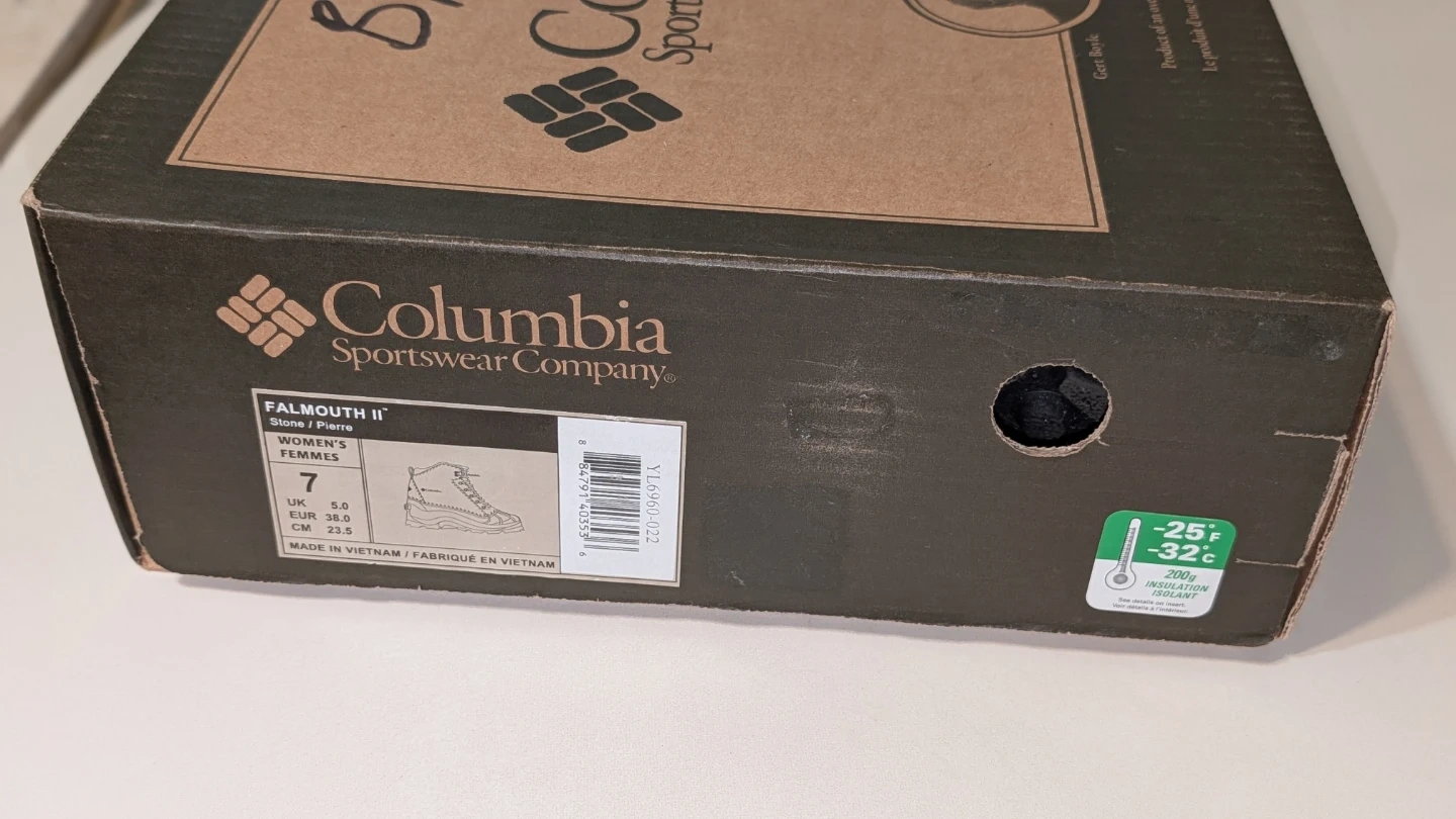 Selling a pair of Columbia Falmouth II women's winter boots in size 7. They're in great shape and ready for the snow! The box is included, and they're rated for -25°F / -32°C with 200g insulation