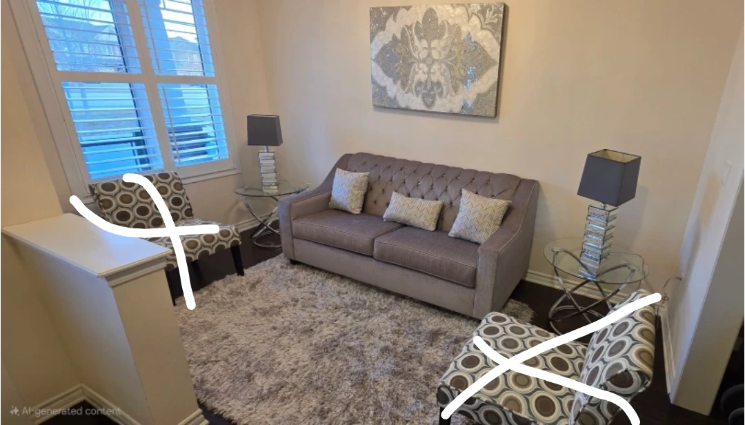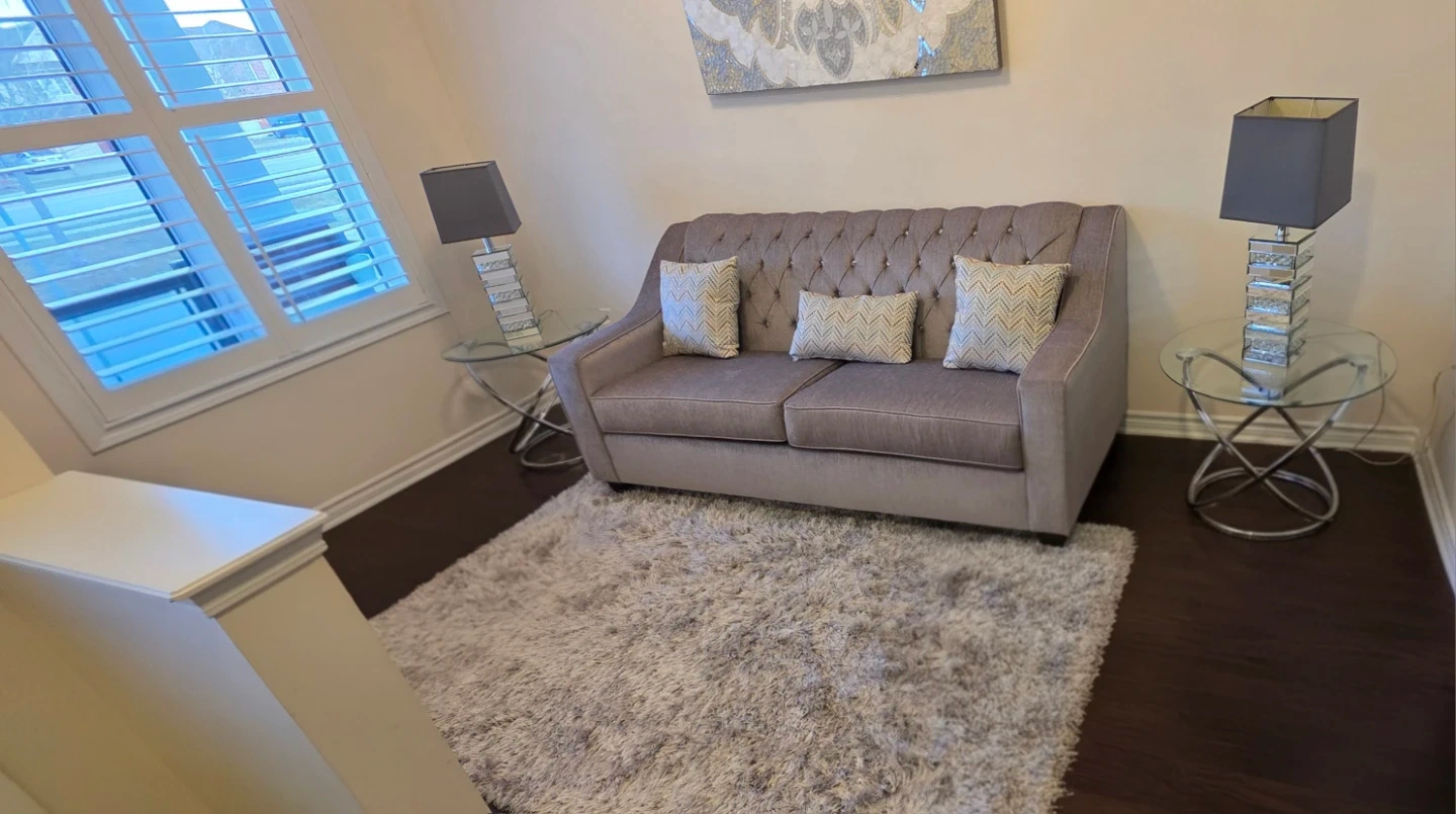 Selling like new living room furniture set at half the cost. It has barely been used and treated more like decor. Included is a 3 seater sofa, 2 glass side tables with lamps, wall decor and a shag carpet.