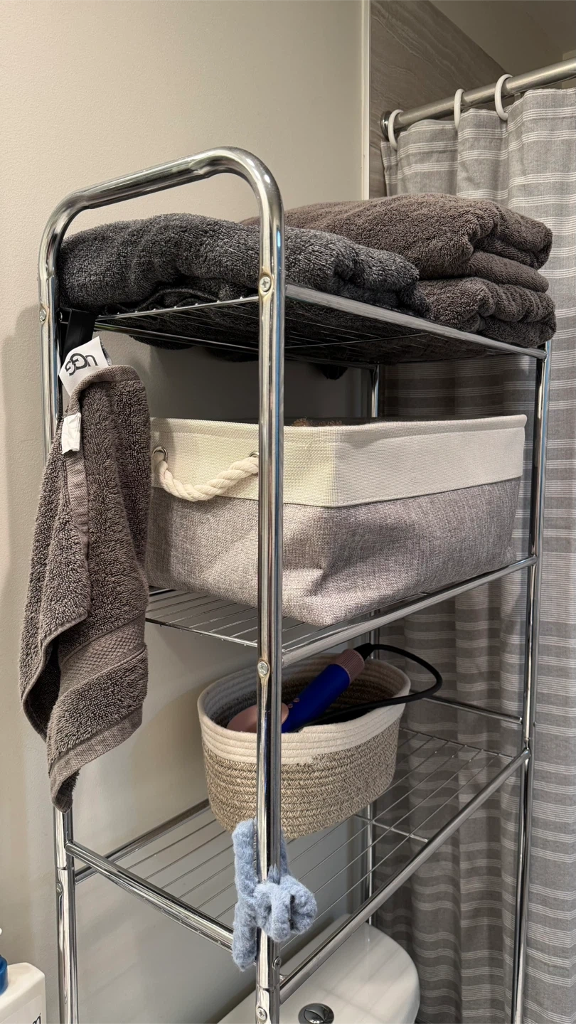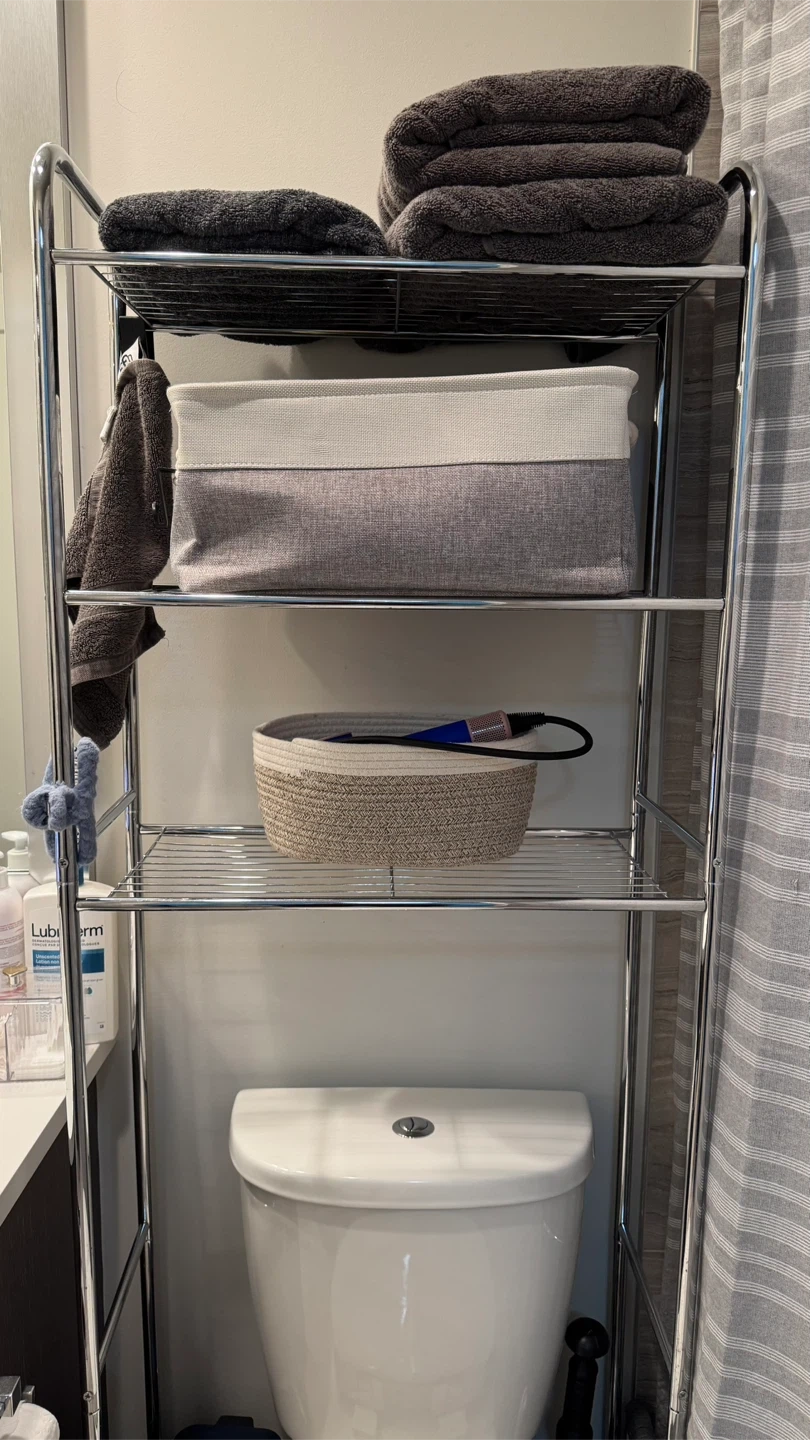 Selling a chrome over-the-toilet storage shelf. It's in great shape and ready to add some extra storage to your bathroom. Perfect for small spaces!