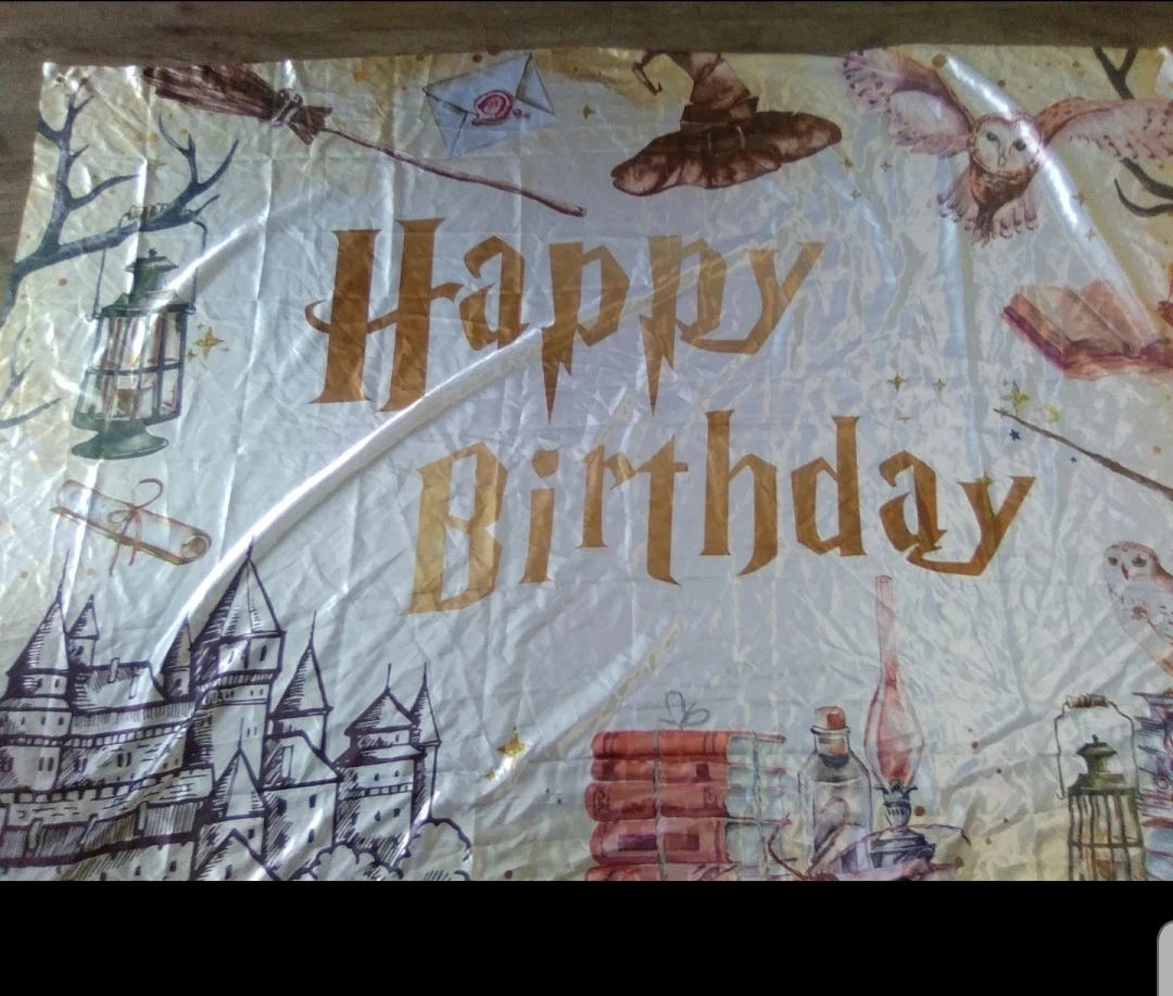 I'm selling a Harry Potter themed 'Happy Birthday' backdrop. It's perfect for a Harry Potter themed birthday party! It features iconic imagery from the Harry Potter series. Brand new 58x80