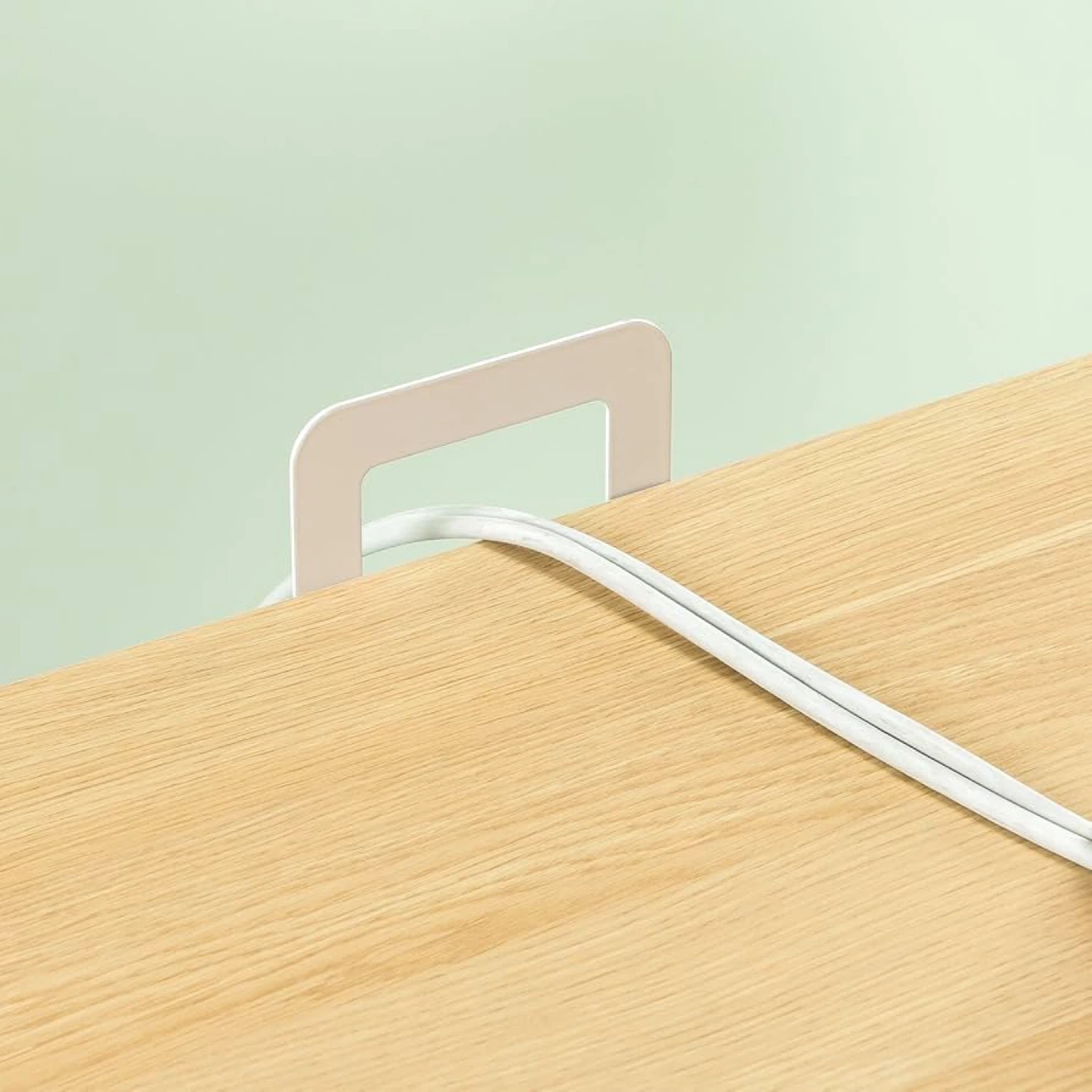 Selling a desk with a wood top and a white metal frame. It's in great shape and measures 39.4" wide, 19.7" deep, and 29.1" high. It also has a handy hook for hanging a bag or cables
