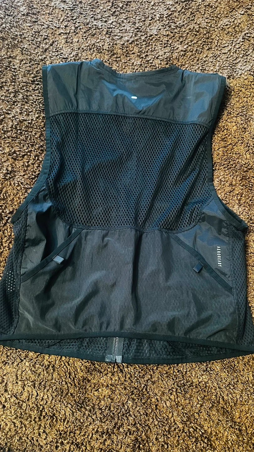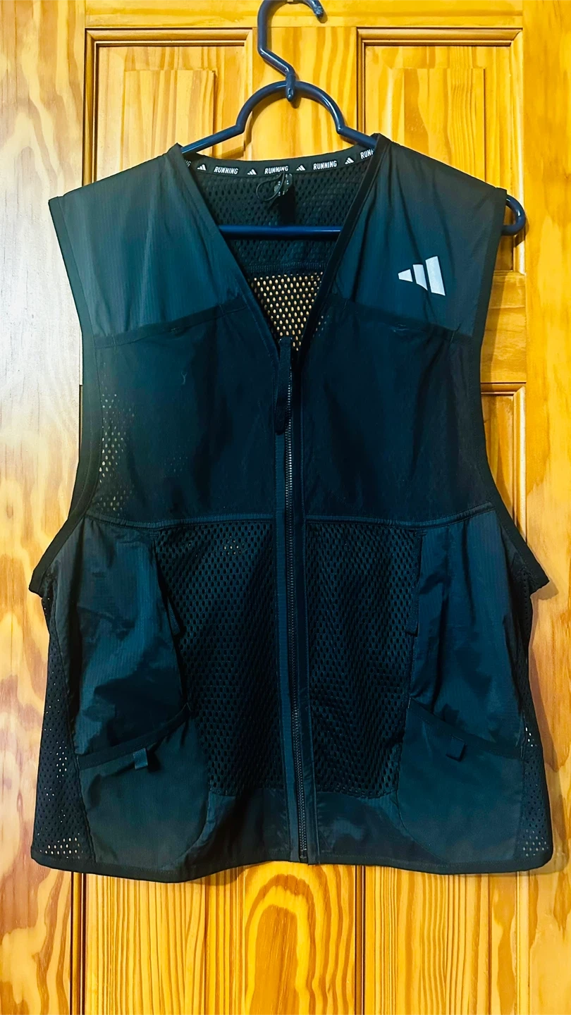 Adidas running vest in size M. Perfect for outdoor activities and keeping essentials close while you're on the go! The vest is black and features the Adidas logo.