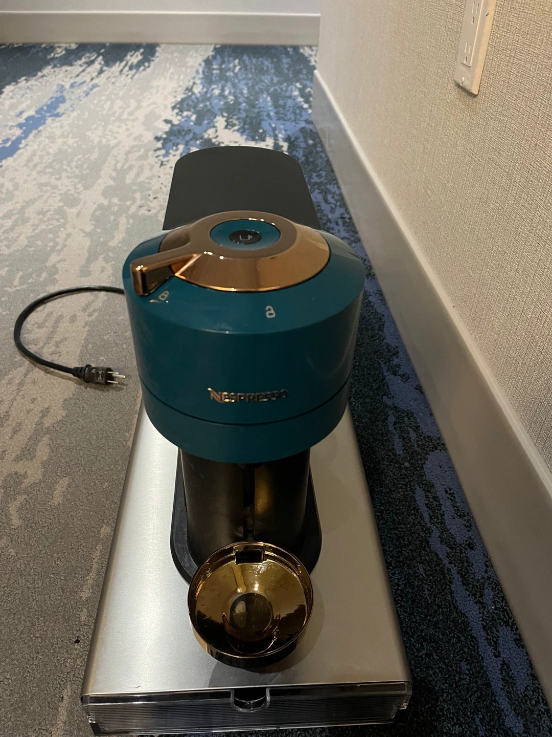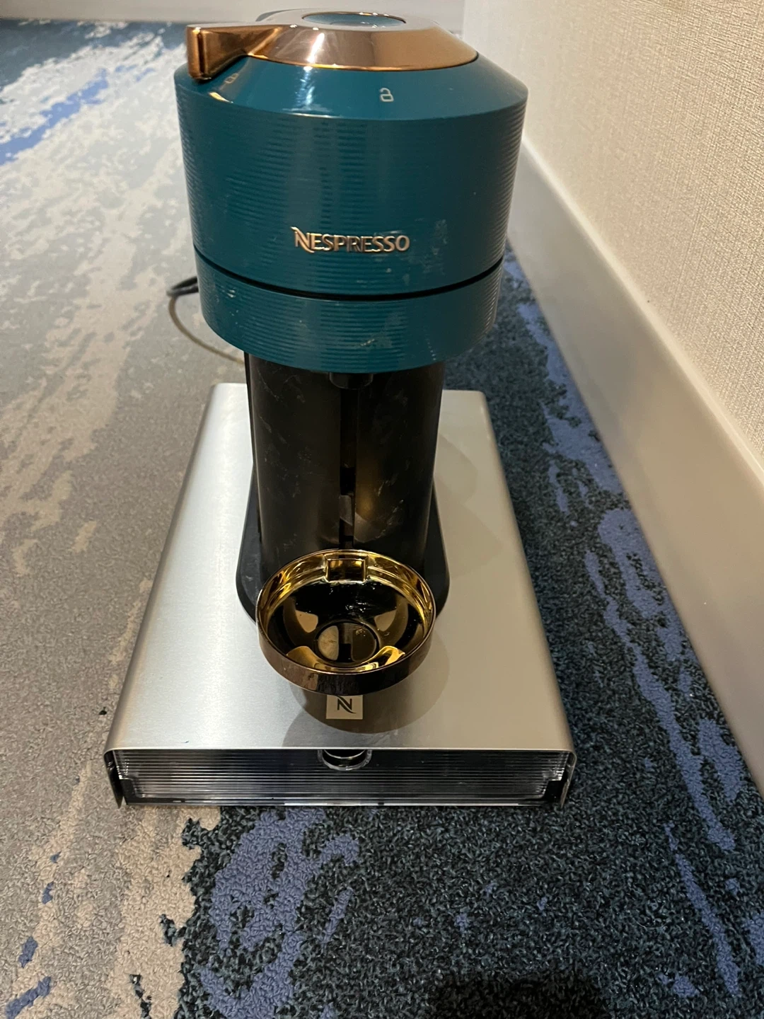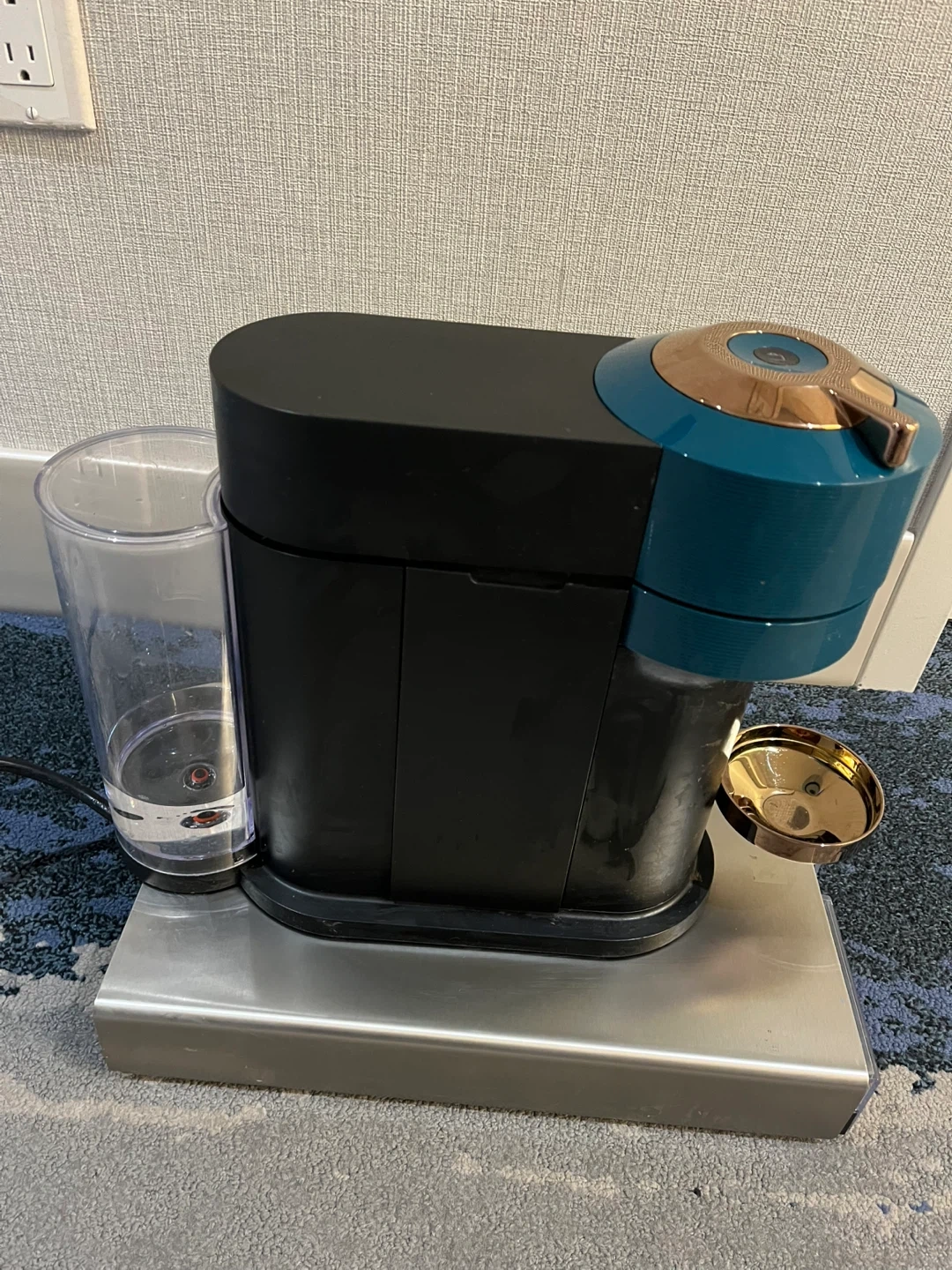 Selling a Nespresso Vertuo Next coffee machine! It's in great shape and ready to make some delicious coffee. The machine is a stylish teal colour with gold accents. Perfect for your morning pick-me-up or entertaining guests.