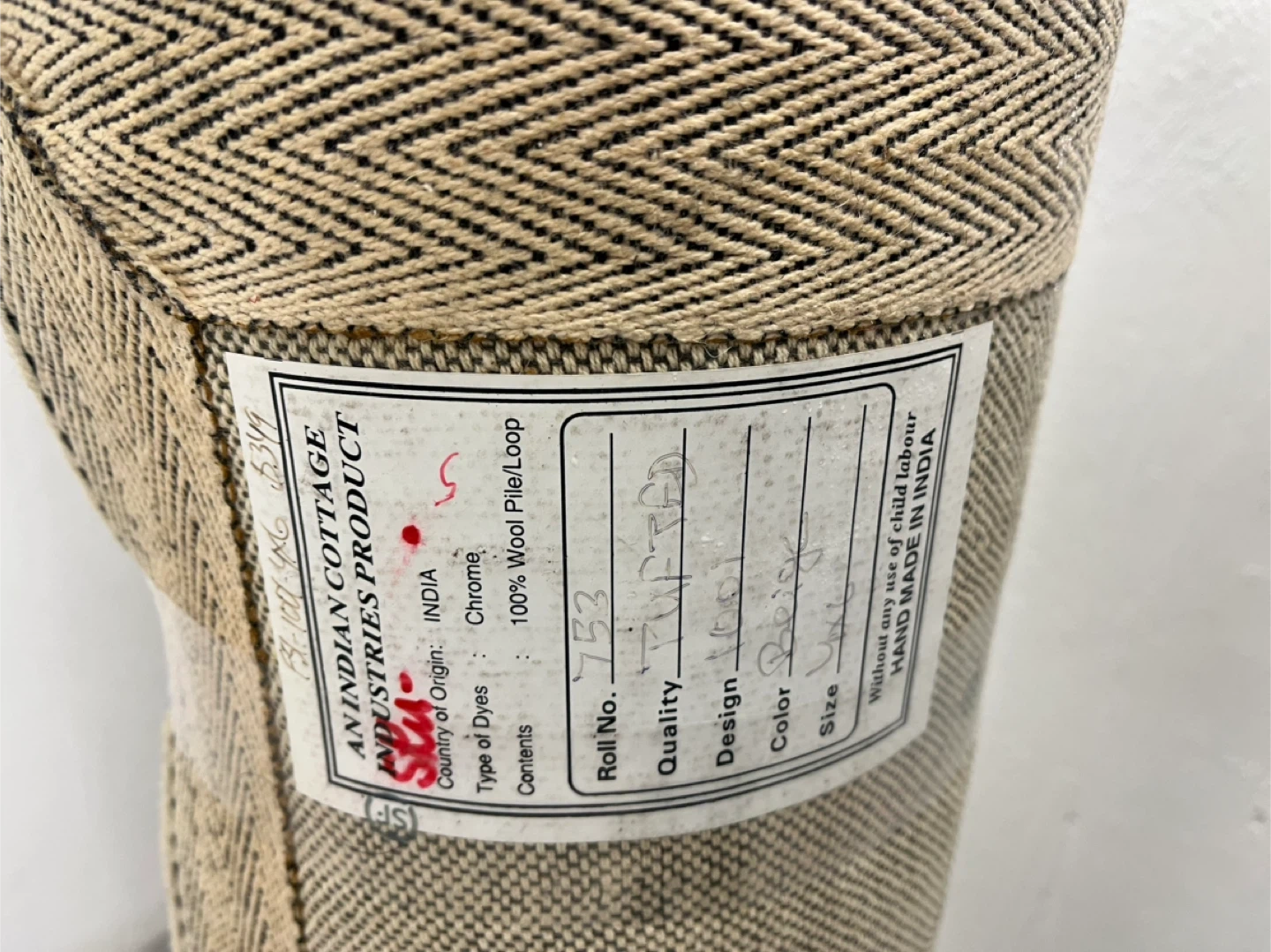 This rug is from Indian Cottage Industries and is made of 100% wool pile/loop. It's a beige colour and is in used condition.4ft 6ft