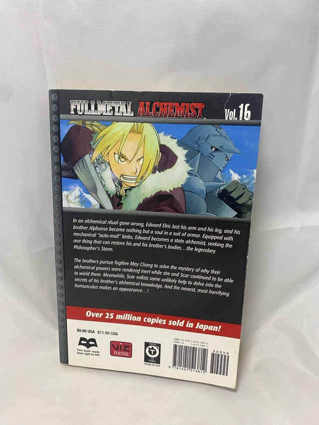 Dive into the captivating world of alchemy with "Fullmetal Alchemist, Vol. 16" by the renowned Hiromu Arakawa. This paperback edition brings to life the intricate narrative and rich character development that have made the series a classic in the manga tradition. Published by Viz Media, it's a must-have for fans and new readers alike. The volume continues the enthralling adventures of the Elric brothers as they seek the Philosopher's Stone to restore what they've lost. With its blend of action, emotion, and mystery, this series is a cornerstone of modern manga, and this issue number 16 is a crucial addition to any collector's library.