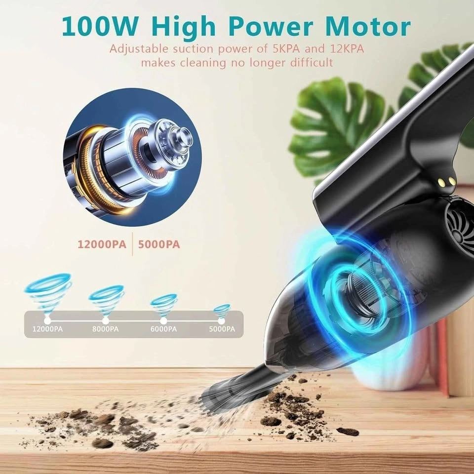 The car vacuum cleaner is equipped with 100W motor that delivers strong suction power, the handheld vacuum also offers 2 mode selectable and adjustable suction.