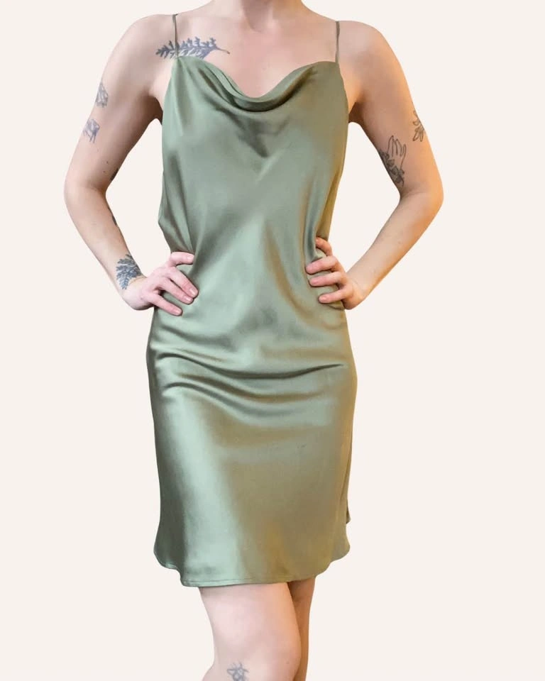 Green satin Abercrombie and Fitch slip: Medium