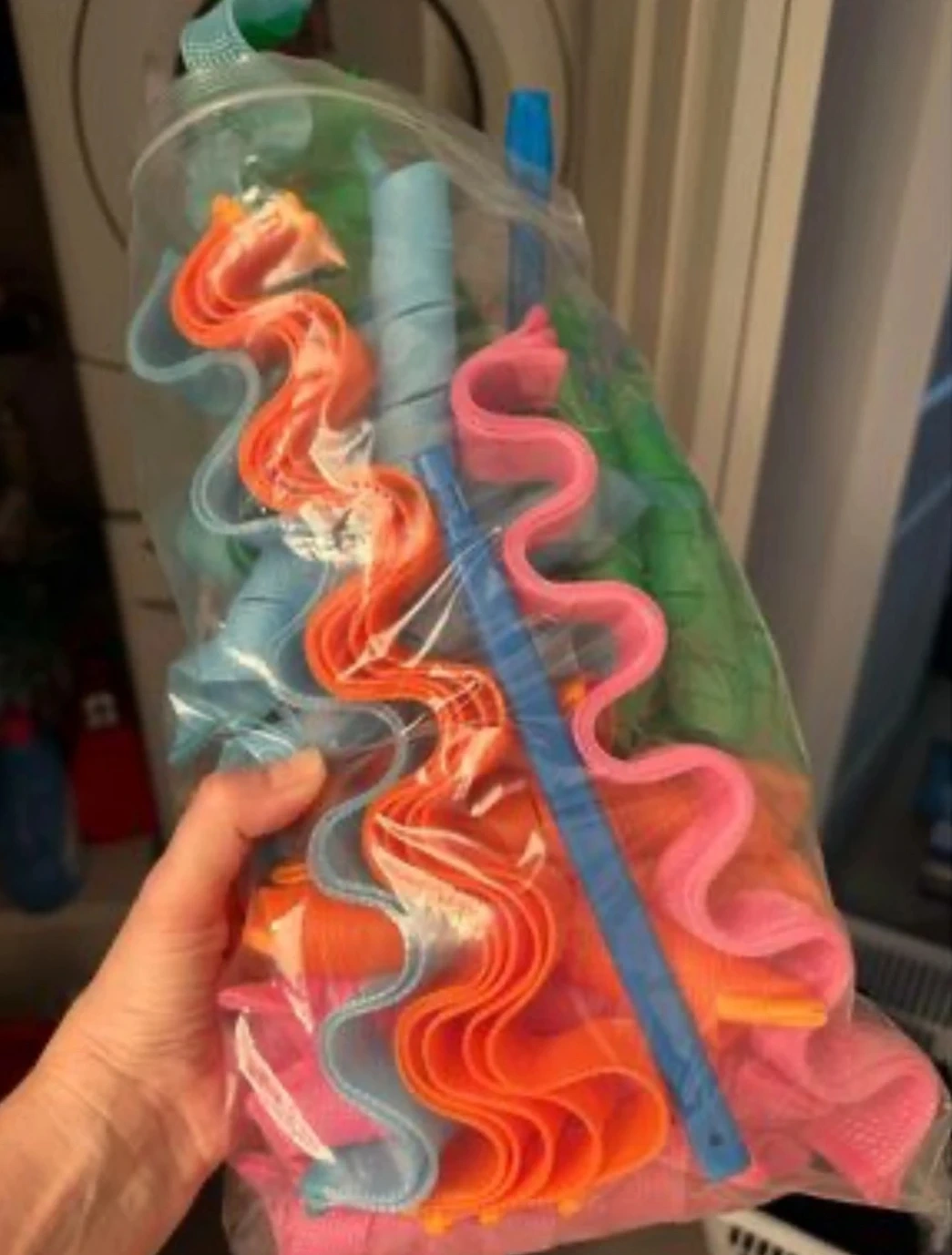 Selling a set of colourful hair curlers! The set includes pink, orange, blue, and green curlers, along with a blue styling hook to help you get the perfect curl. Great for trying out new hairstyles!