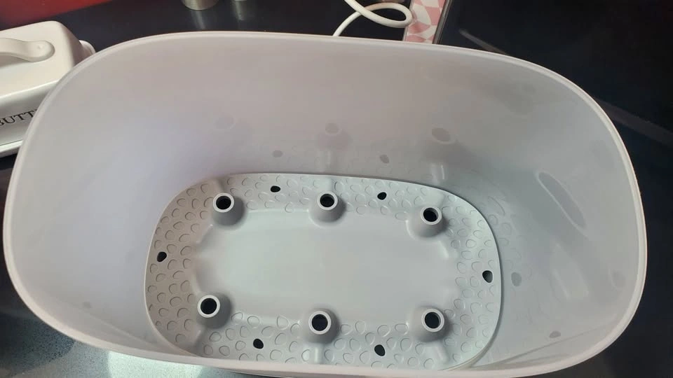 The new drip tray protects the heating plate. This electric steam sterilizer is easy to clean.