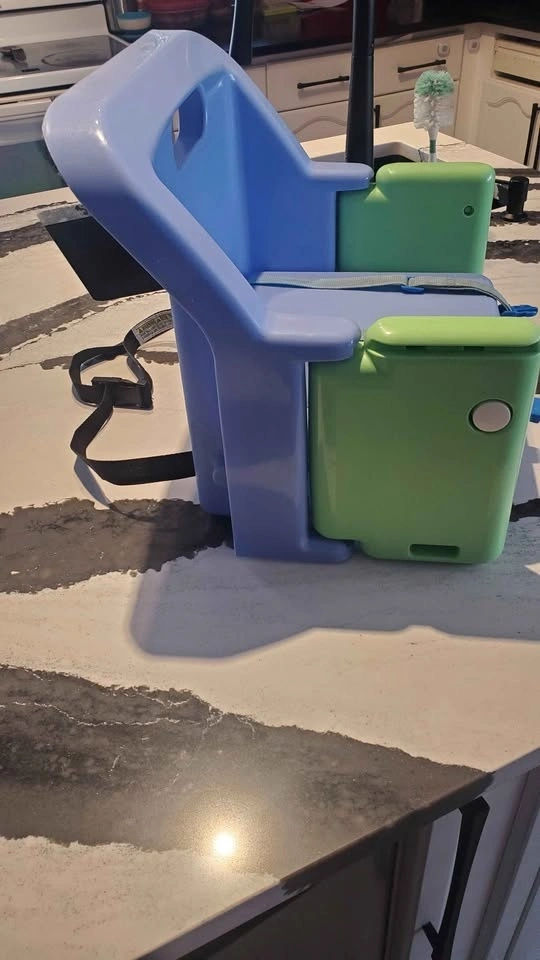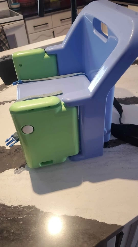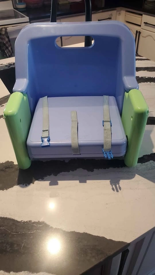 Safety First brand Infant / toddler booster seat. Works with or without the tray. The strap to secure it to a chair is not the original one it's one that I added but it works well. $5. Pick up in Pondmills.