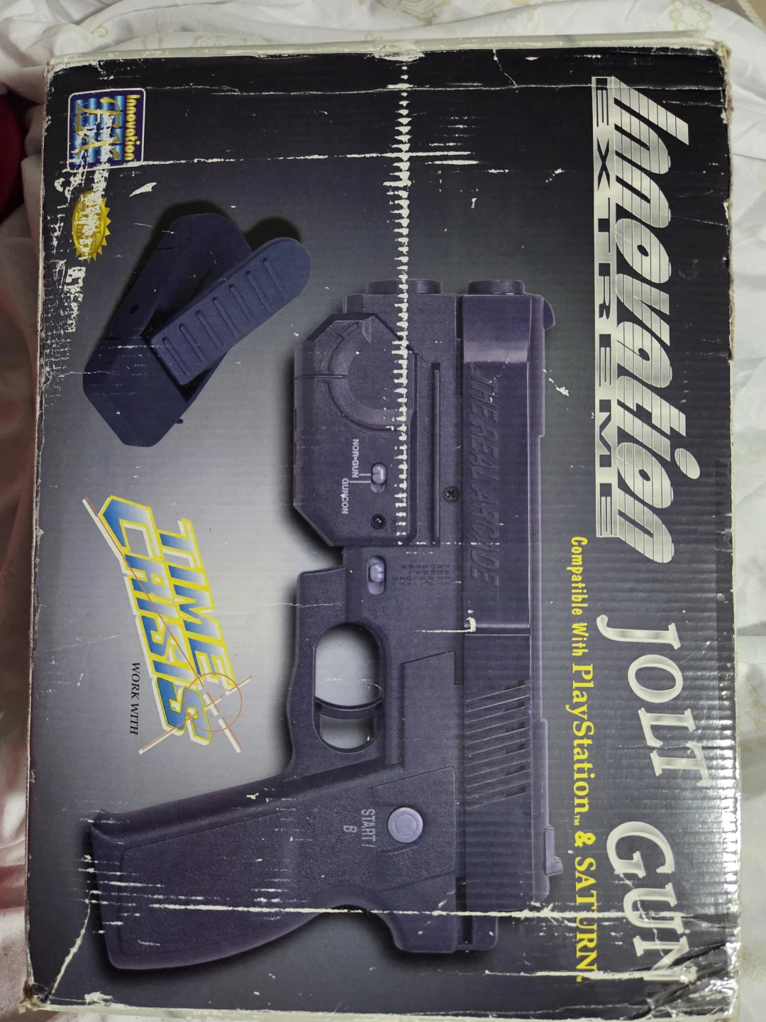 Selling an Innovation Extreme Jolt Gun compatible with PlayStation and Saturn consoles! It comes with the pedal and all the necessary components to enjoy classic light gun games. The box is included!
