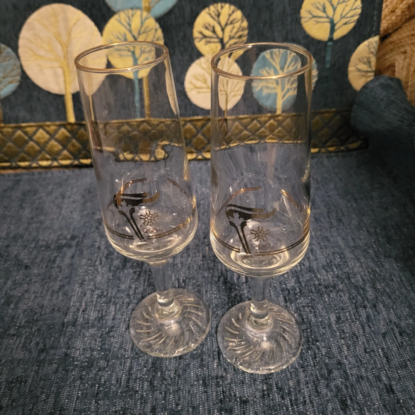 Selling a pair of elegant champagne flutes! They feature a unique Olympic design around the rim. Perfect for celebrations or adding a touch of class to your home bar.