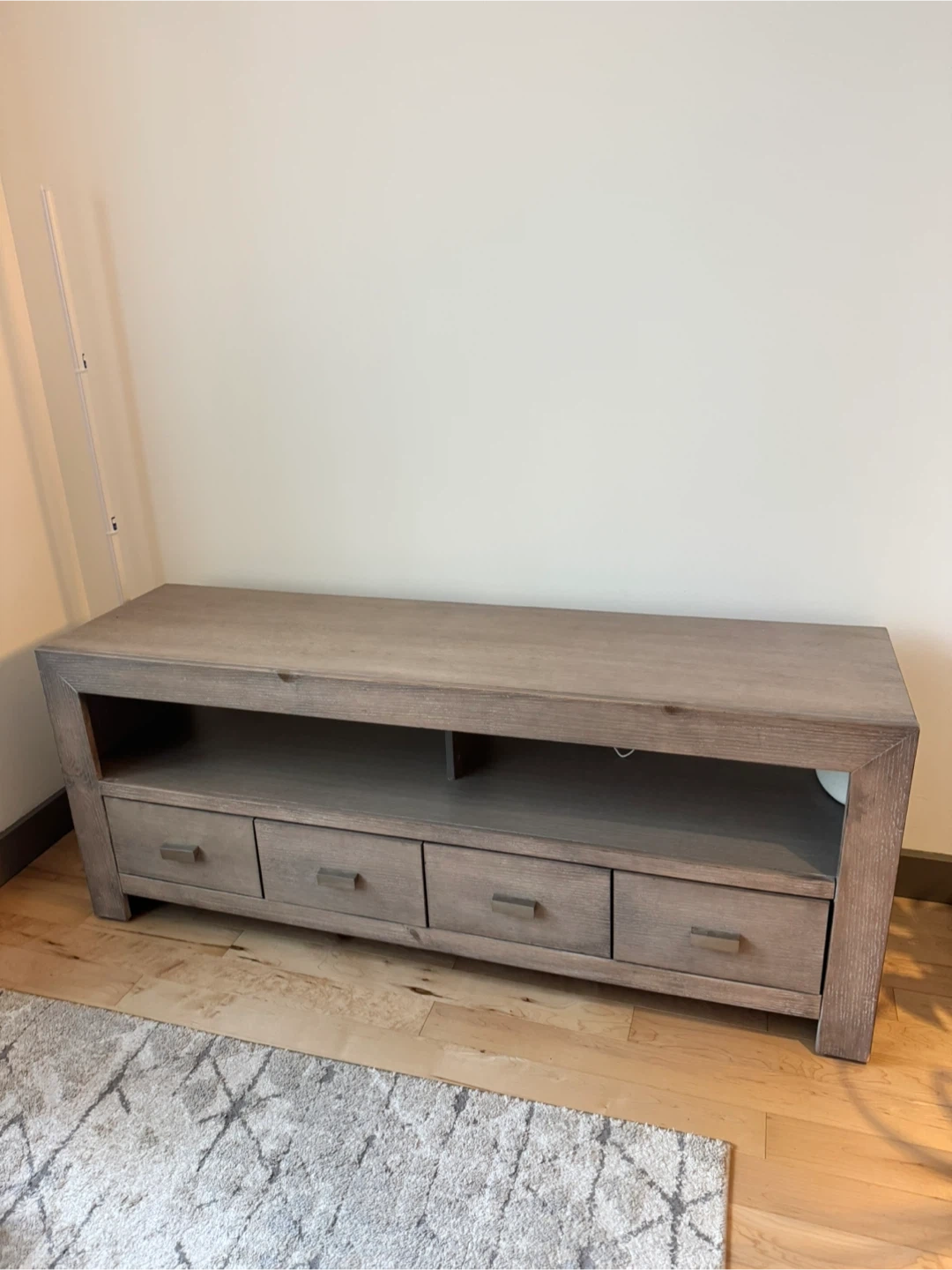 Buy & SellWooden TV Stand with DrawersWooden TV Stand with Drawers$75Selling a wooden TV stand. It has a shelf and four drawers for storage. It's in excellent condition and ready for a new home!ConditionLike newDimensionsW16” x L60” x H24”WHERE TO MEETCheck LocationView MapSELLERverifiedBriLower Manhattan1458 reviews0 chats·2 favorites·76 viewsSEND CHAT TO SELLERHi Bri! I’m interested in your listing.Hi Bri! I’m interested in your listing.Get the Karrot app to chatSign In to chat
