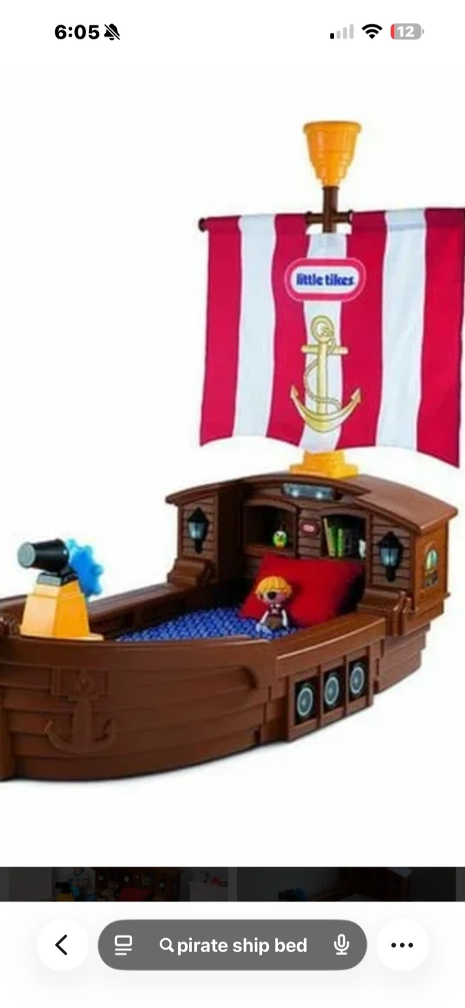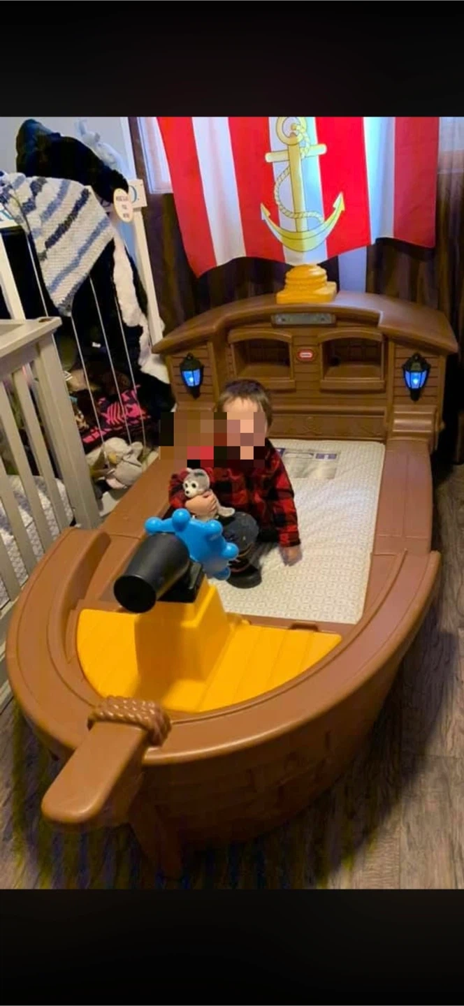 Ahoy there, mateys! Selling a Little Tikes Pirate Ship Toddler Bed. Perfect for your little buccaneer's dreams of adventure on the high seas. It's in good used condition and ready for a new voyage in your home! Mattress not included