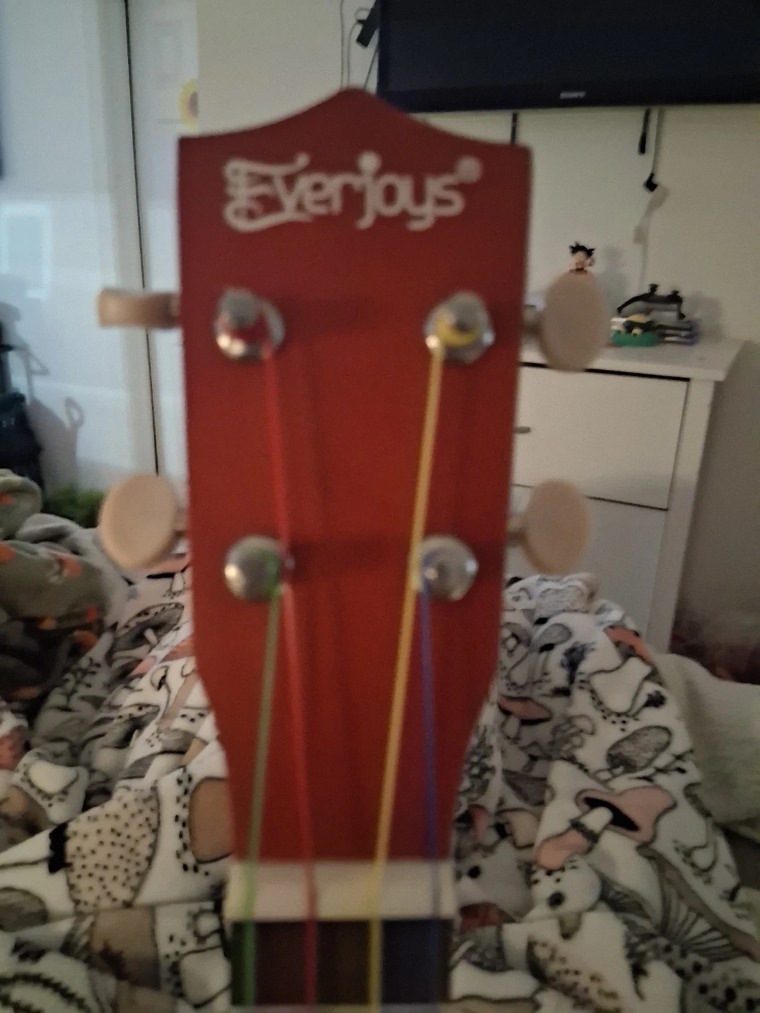 Selling a cute ukulele from Everjoys! It's in great condition and ready for someone to learn how to play it. The strings are in good shape, and it's a fun instrument to have around ans is out of tune sooo