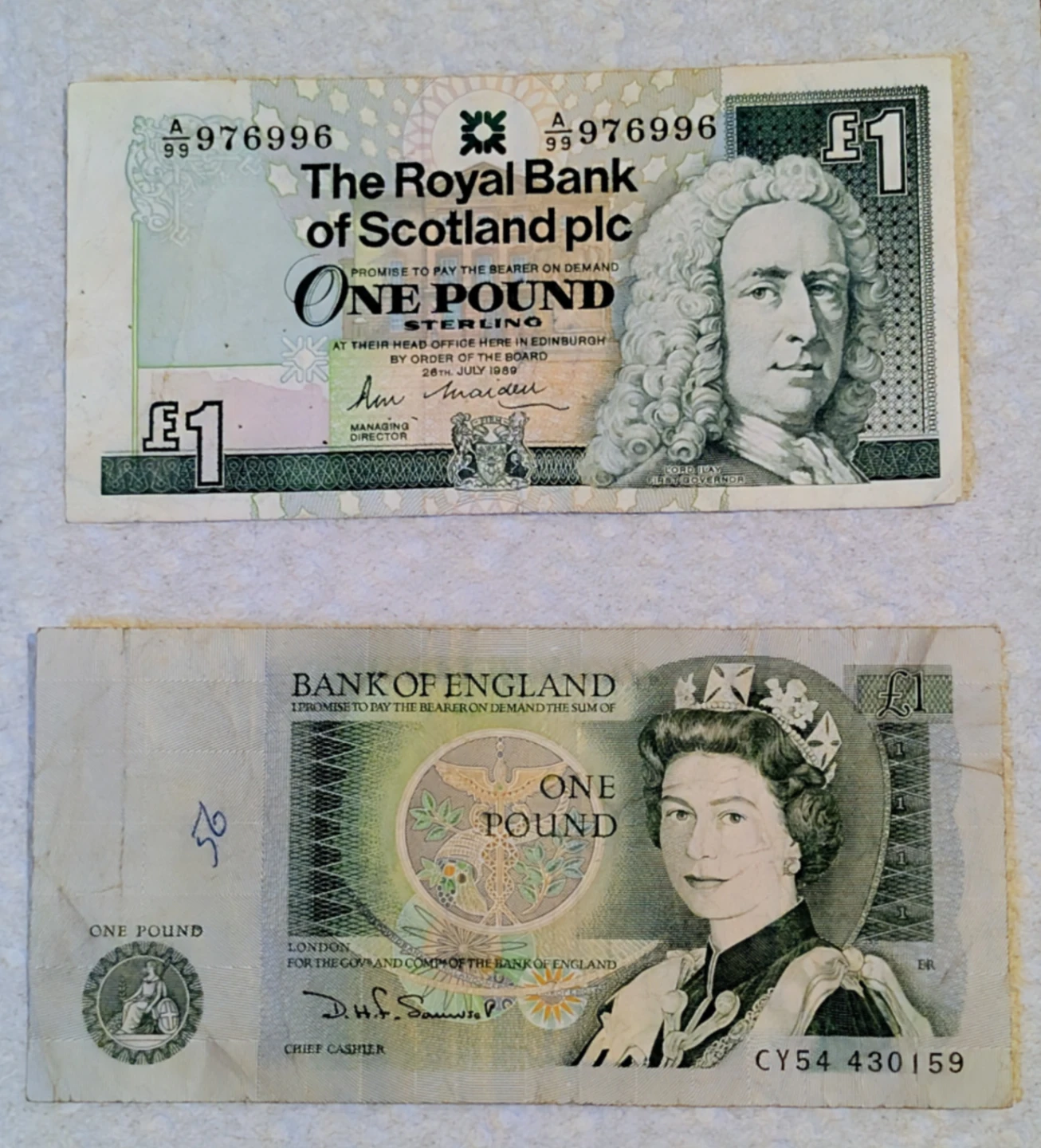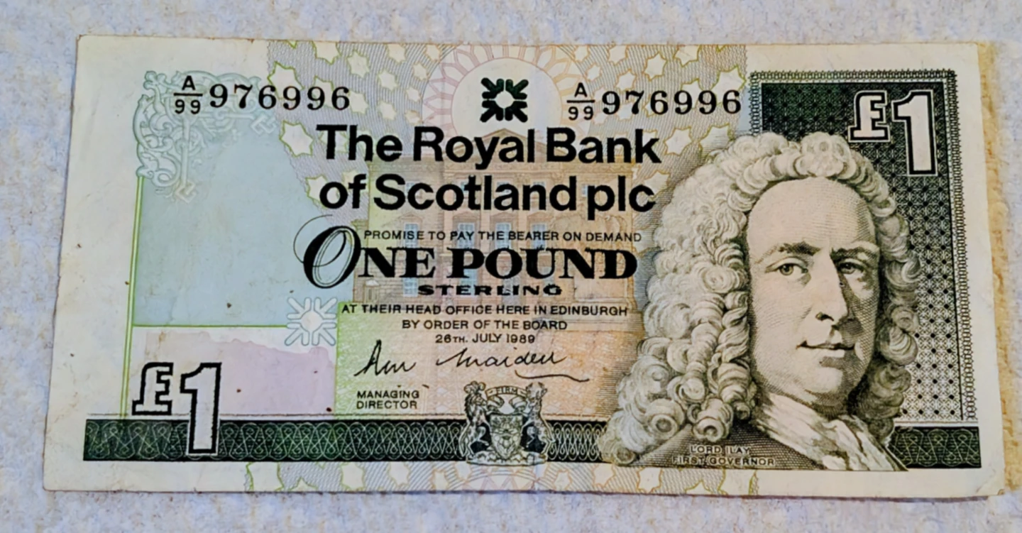 One Pound Sterling Bank Notes from England and Scotland