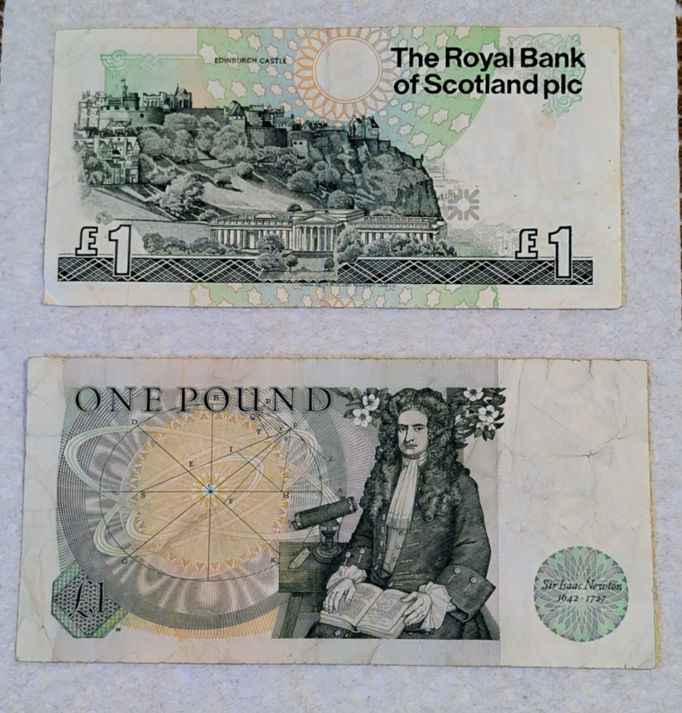 Selling a collection of One Pound Sterling bank notes. These notes feature historical figures and landmarks from the Bank of England and The Royal Bank of Scotland.