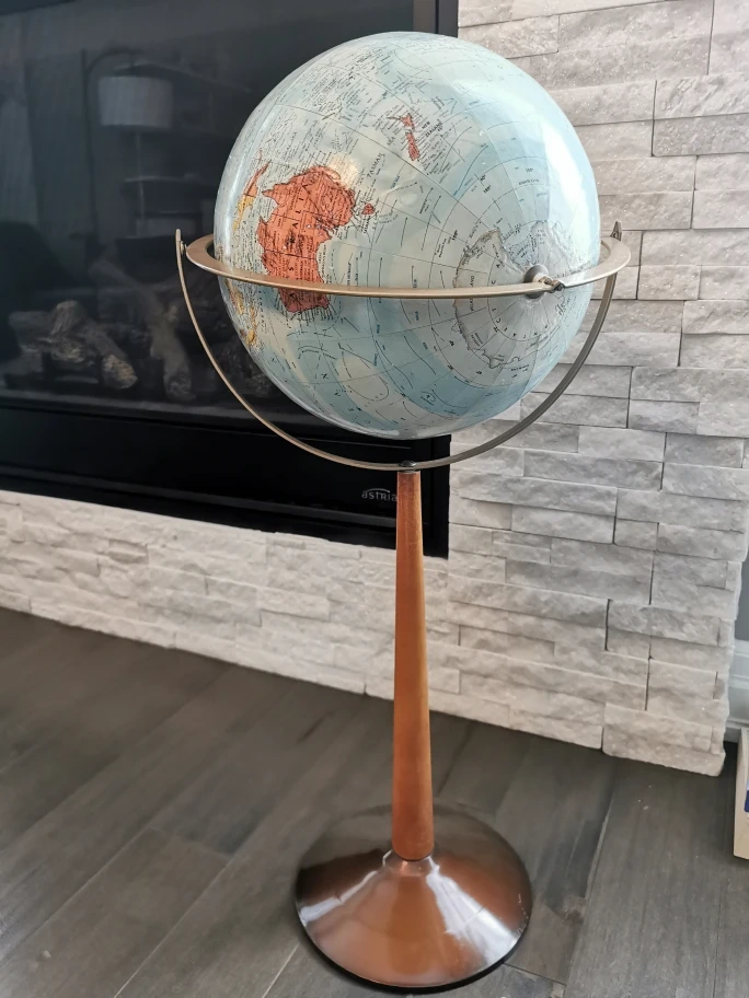 Selling a vintage standing globe. It's in great shape and would look lovely in any home or office! A perfect decorative piece for geography enthusiasts or anyone who appreciates vintage decor.