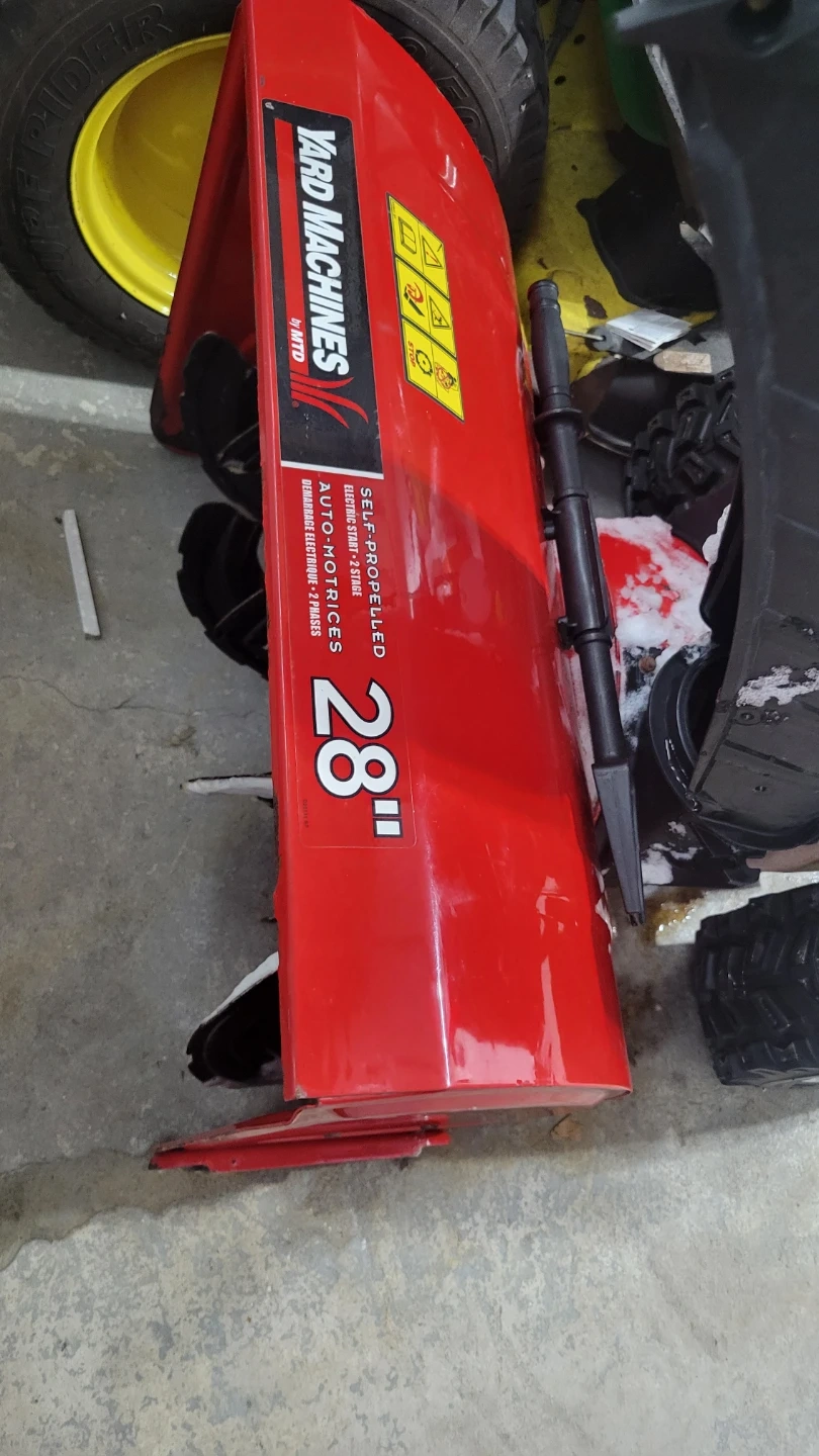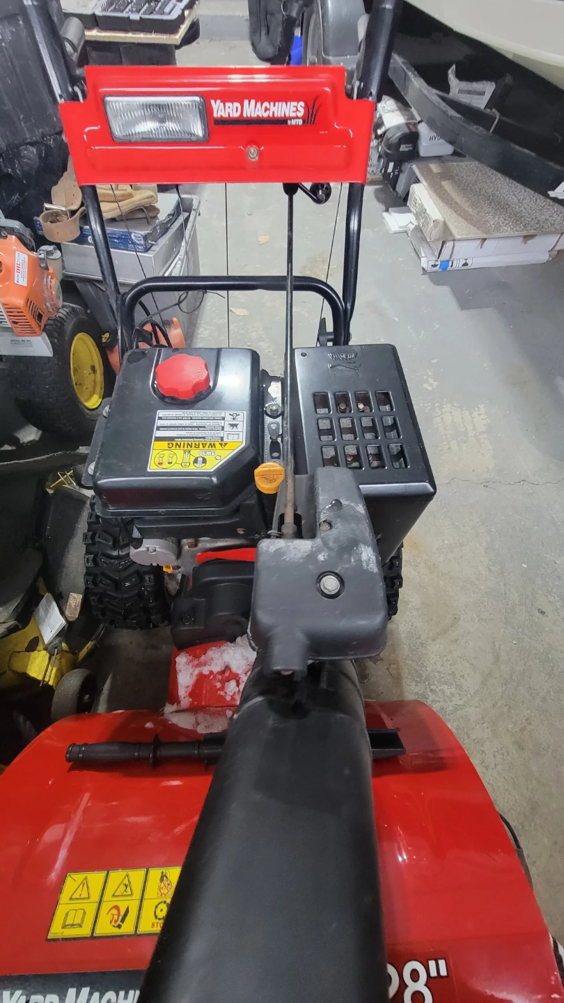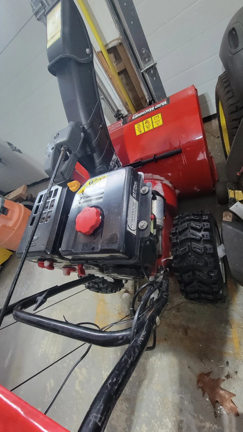 Selling a Yard Machines snow blower with a 28-inch clearing width. It's self-propelled and has auto-rotrices. Great for clearing snow this winter!