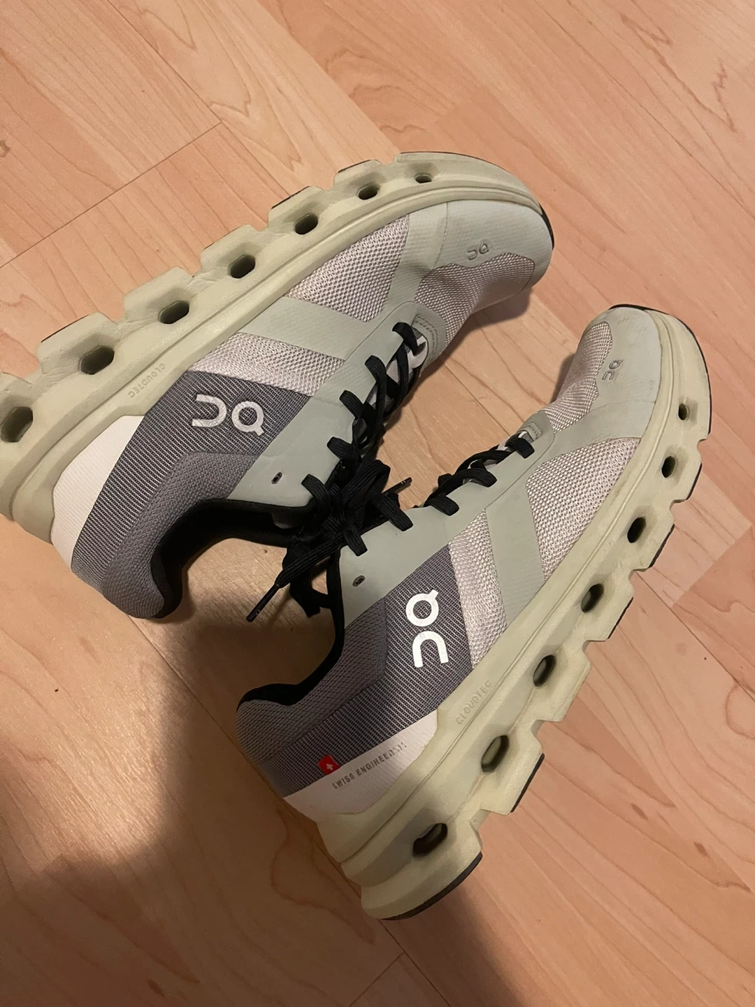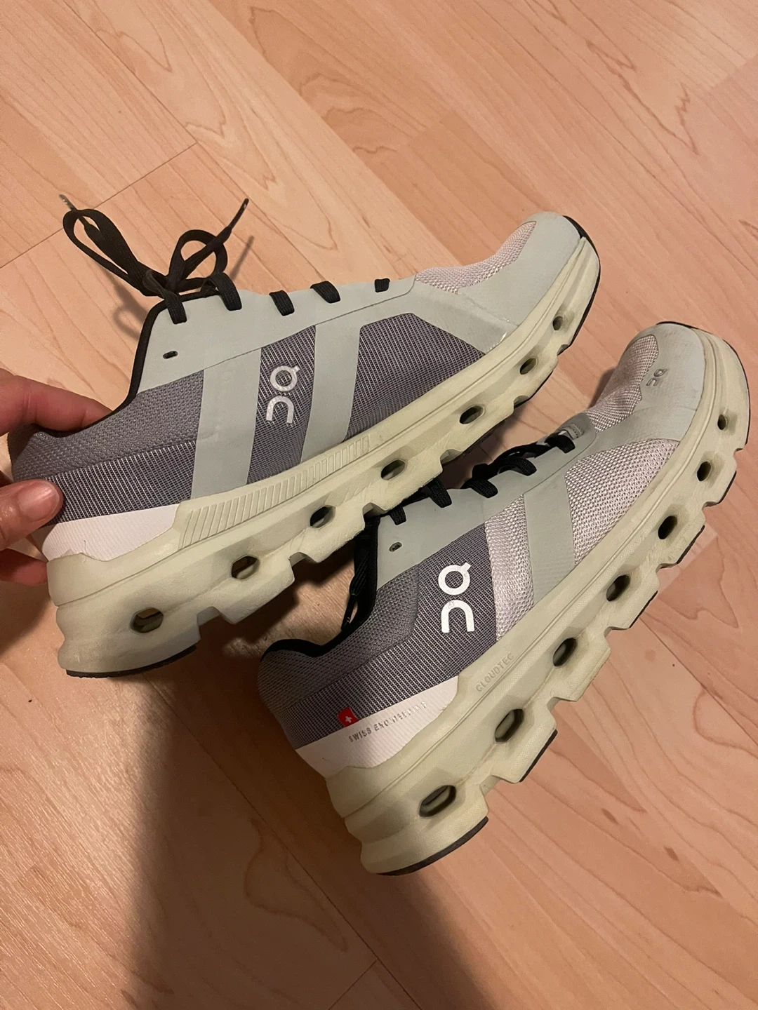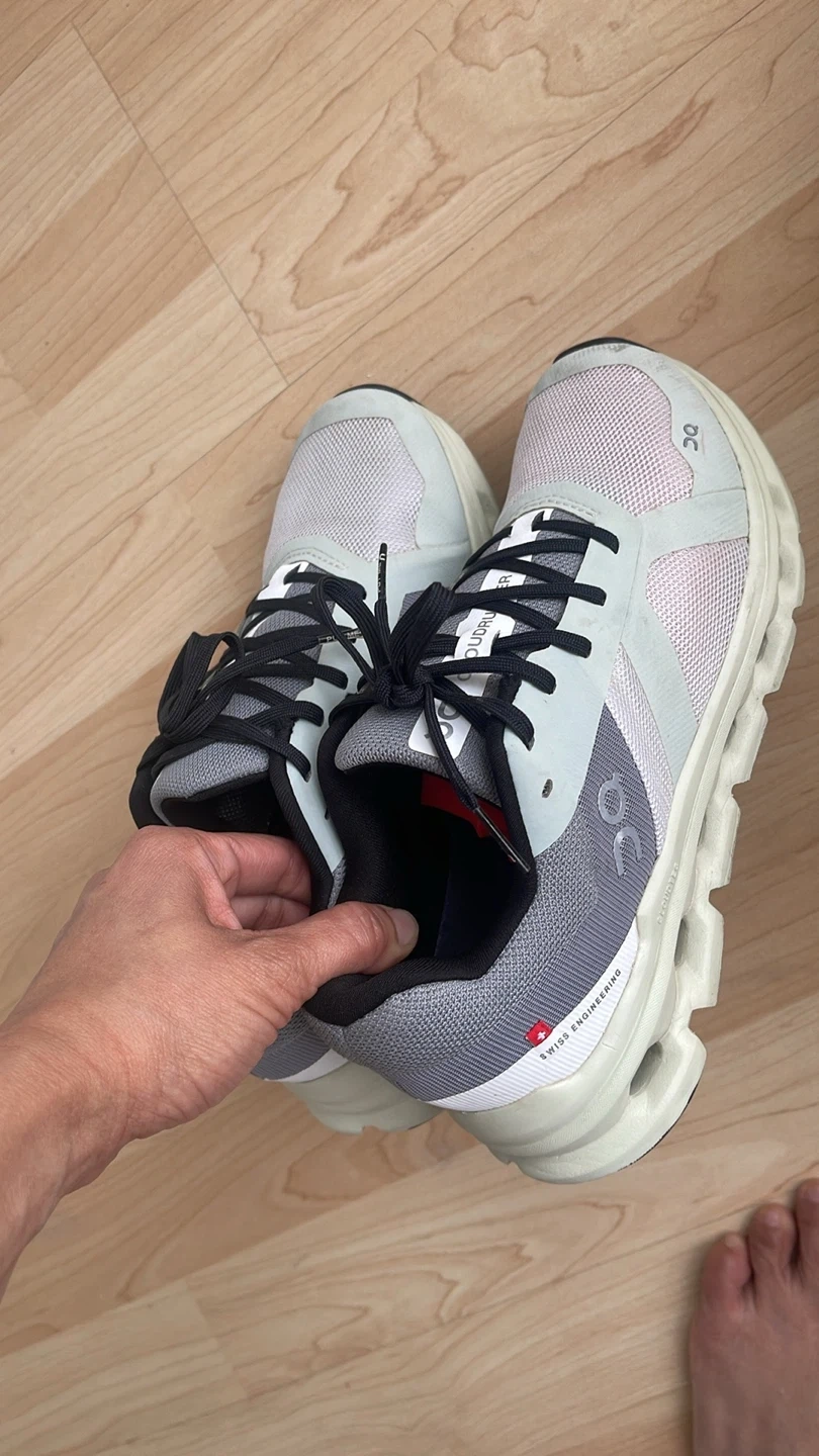Selling a pair of On Cloudmonster sneakers in grey. They're in good condition and ready for your next run or workout! Check out the photos for a closer look