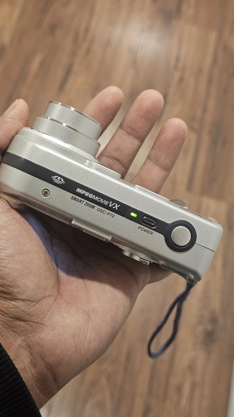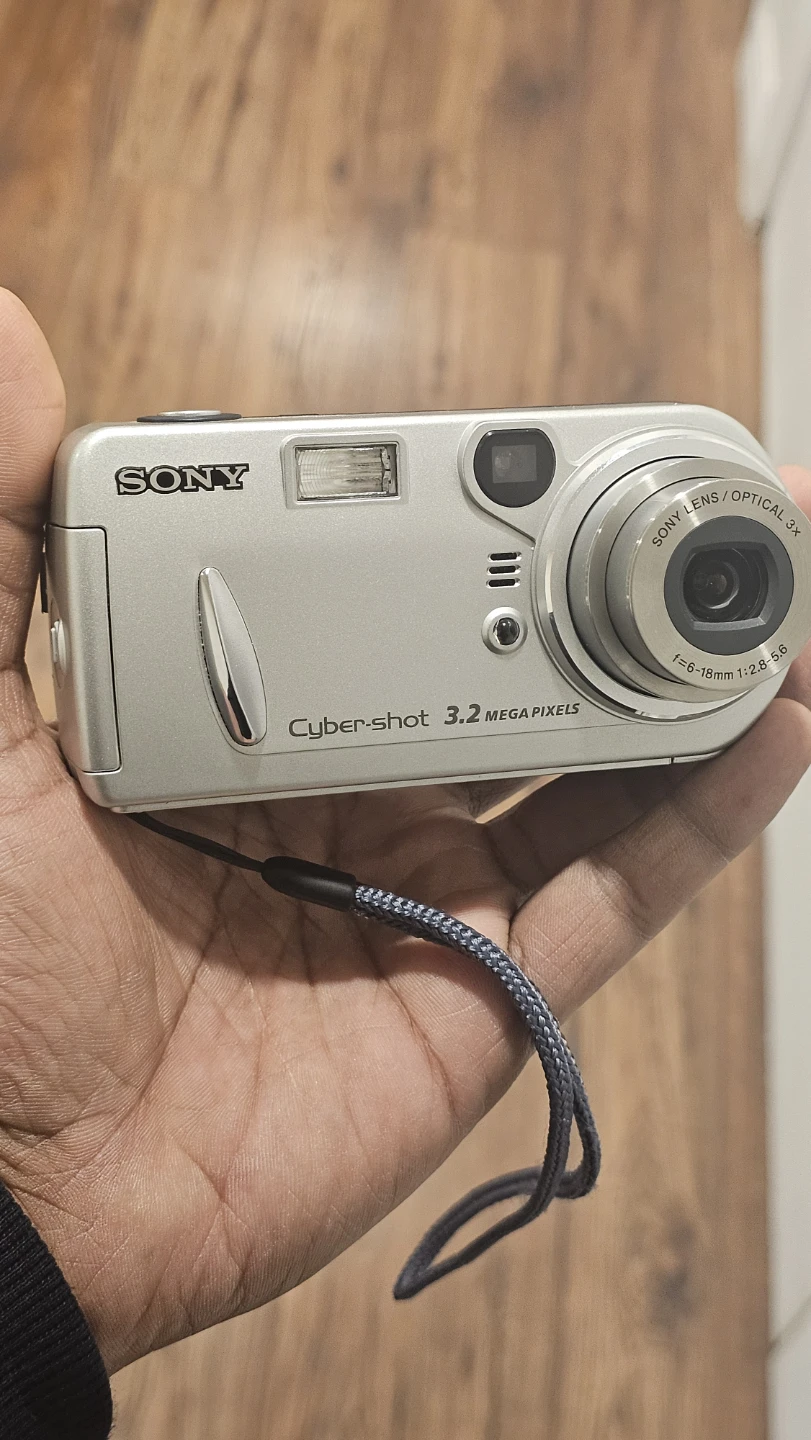 Selling a Sony Cybershot DSC-P72 digital camera. It has 3.2 megapixels and a 3x optical zoom. It is in good condition and ready for a new photographer!