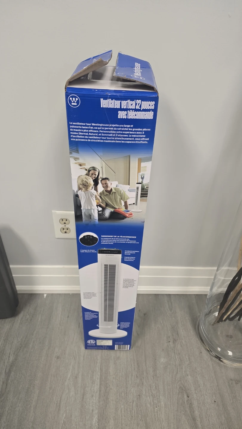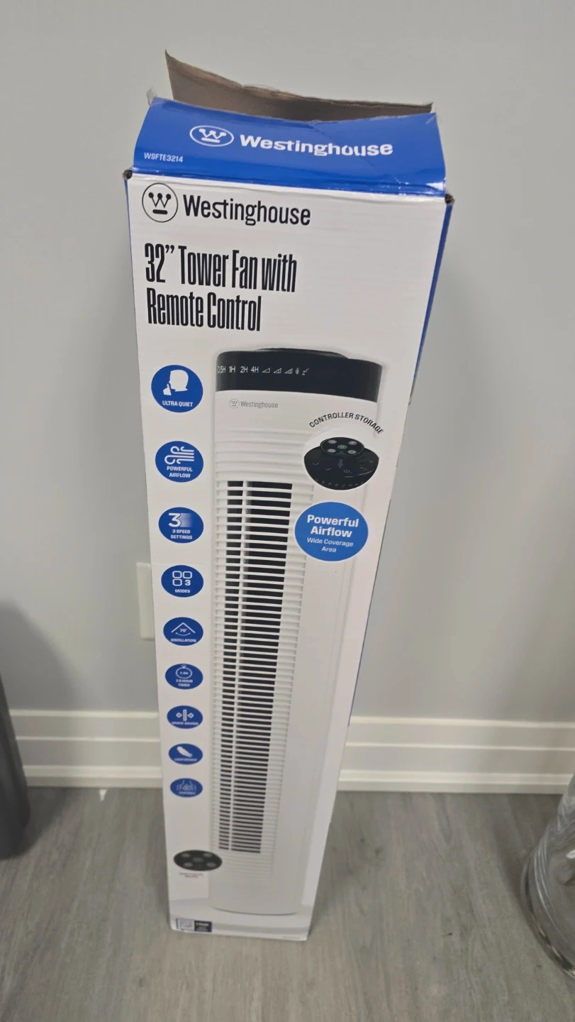 Selling like brand new Westinghouse 32" Tower Fan with Remote Control! It's still in its original box and has never been used. This tower fan features: