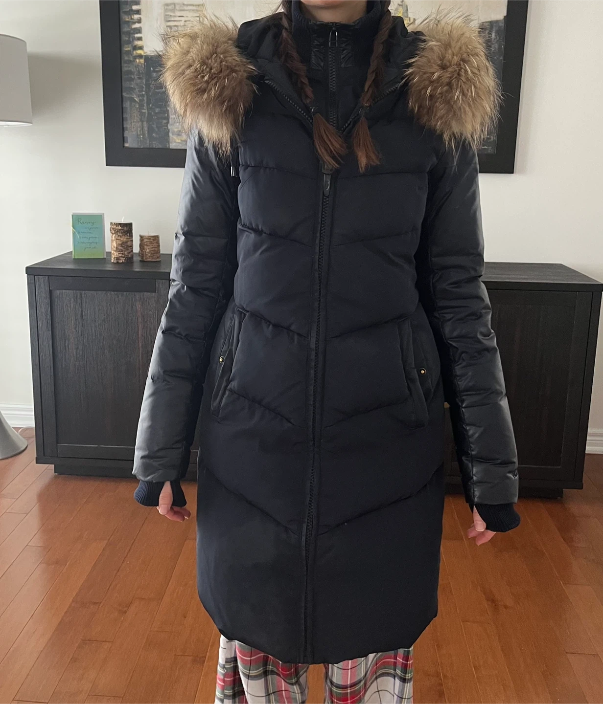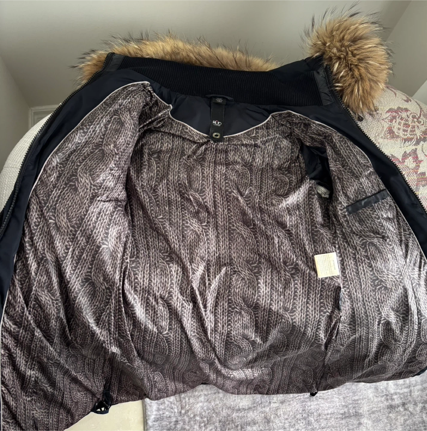 Selling a Rudsak down winter coat in navy blue. The coat features a stylish design with a fur-trimmed hood to keep you warm and cozy