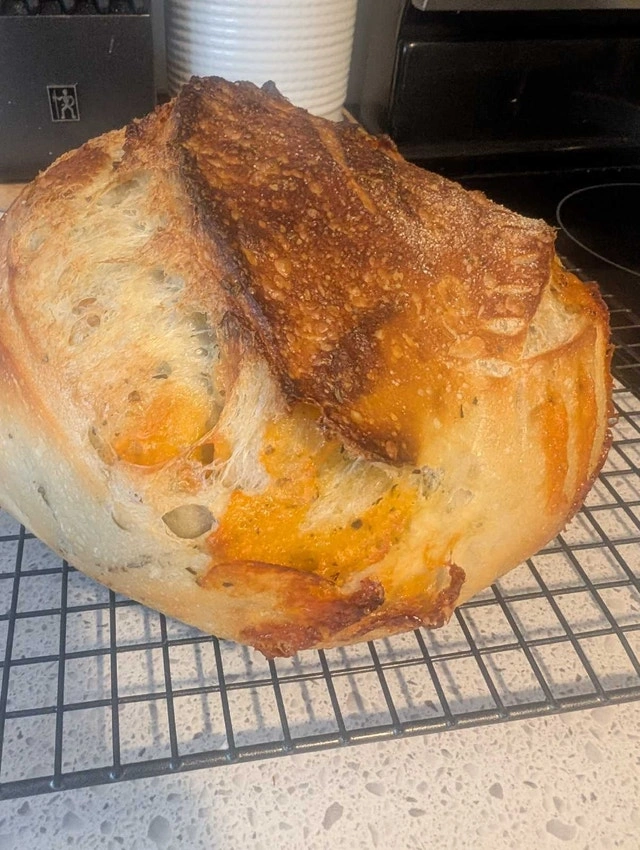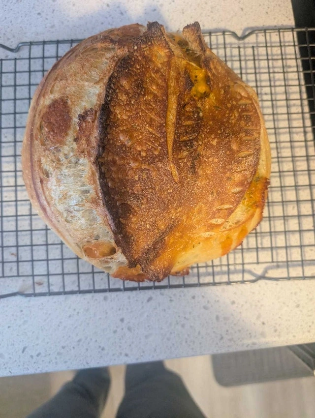 Indulge in freshly baked goodness with this sourdough loaf, boasting a delightful crust and soft, airy interior. Baked with care and using quality ingredients, this bread is perfect for sandwiches, toast, or enjoying on its own. It is in good condition. Life is too short for mass-produced bread! If this ad is still up, the baking is available!