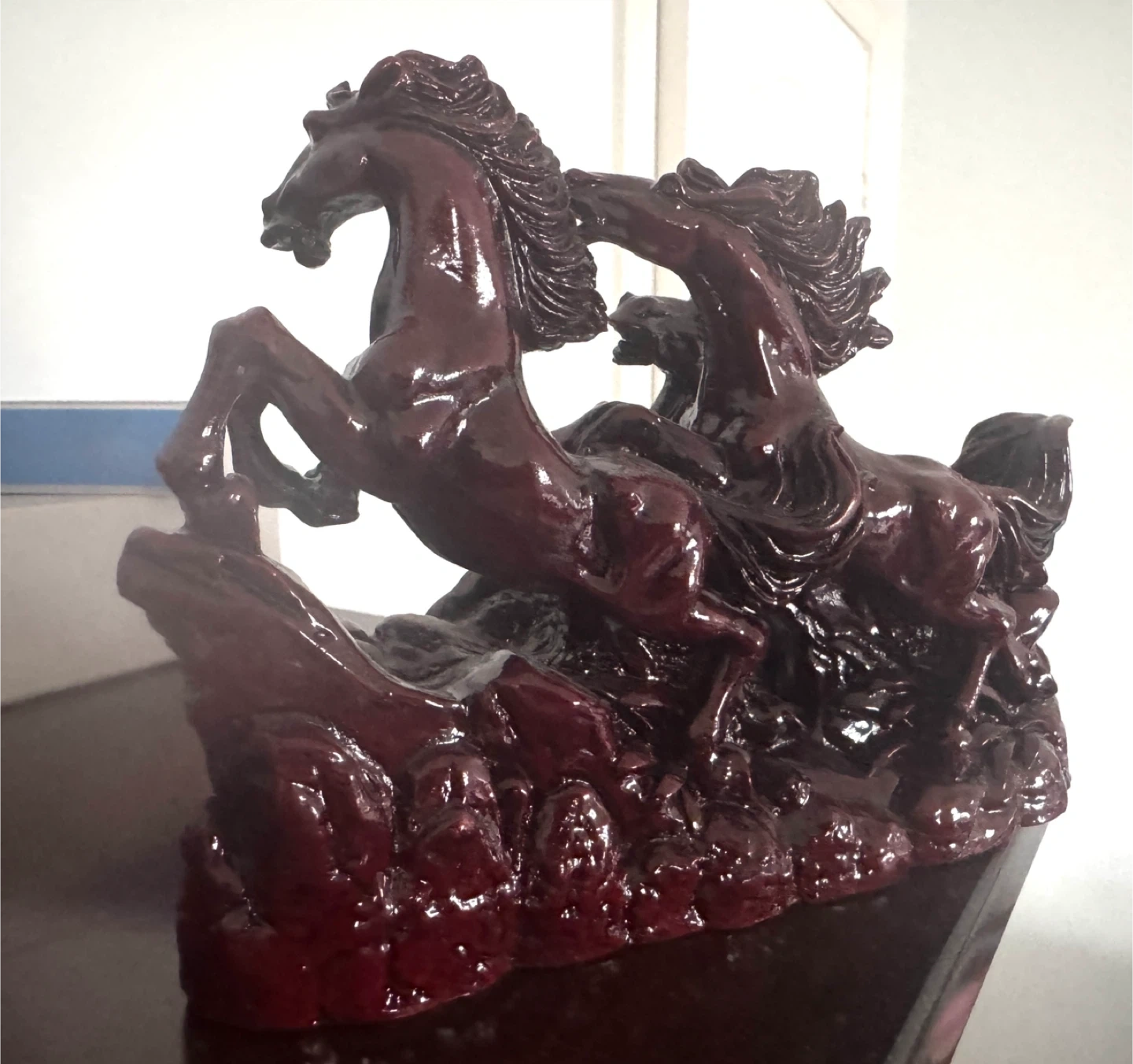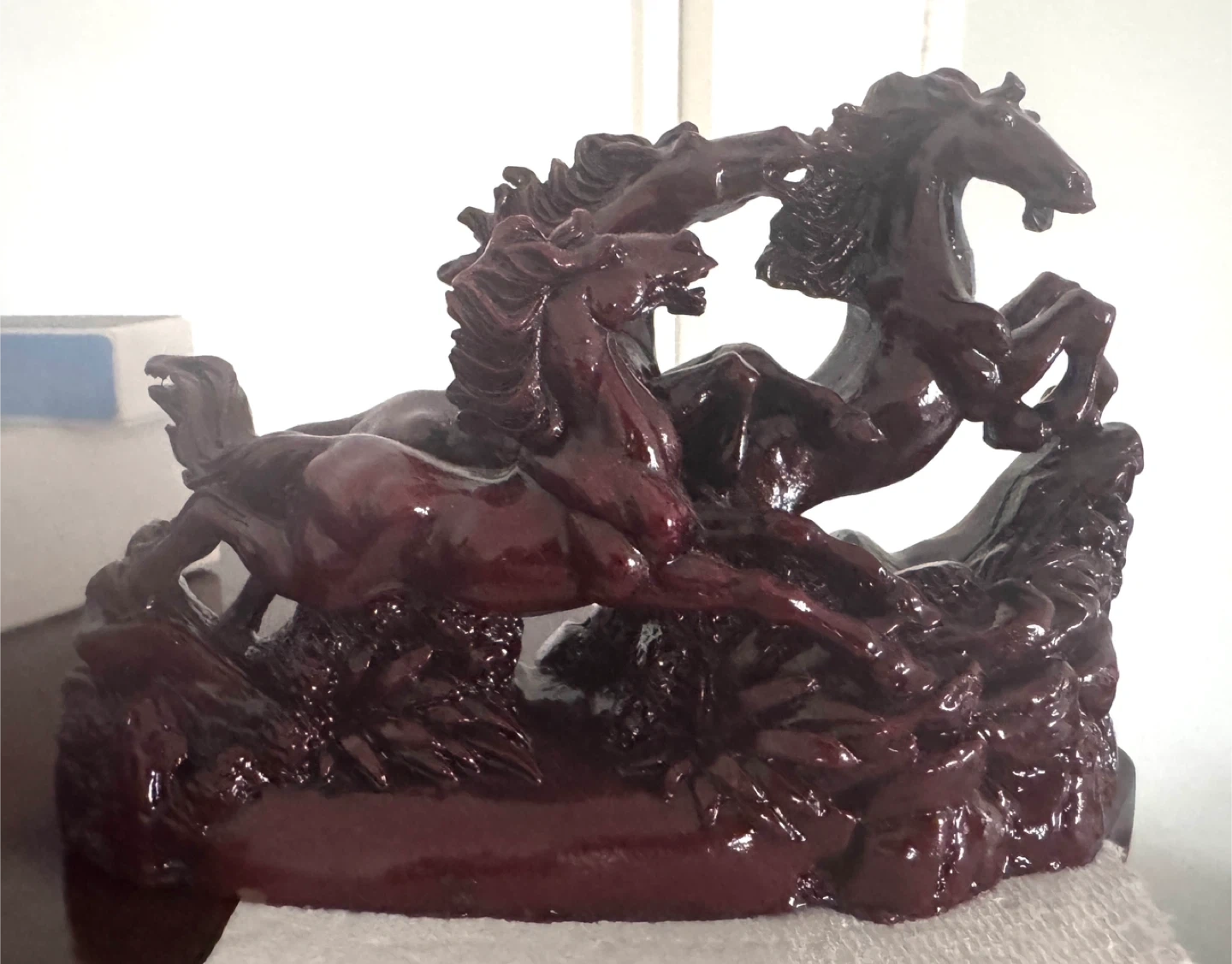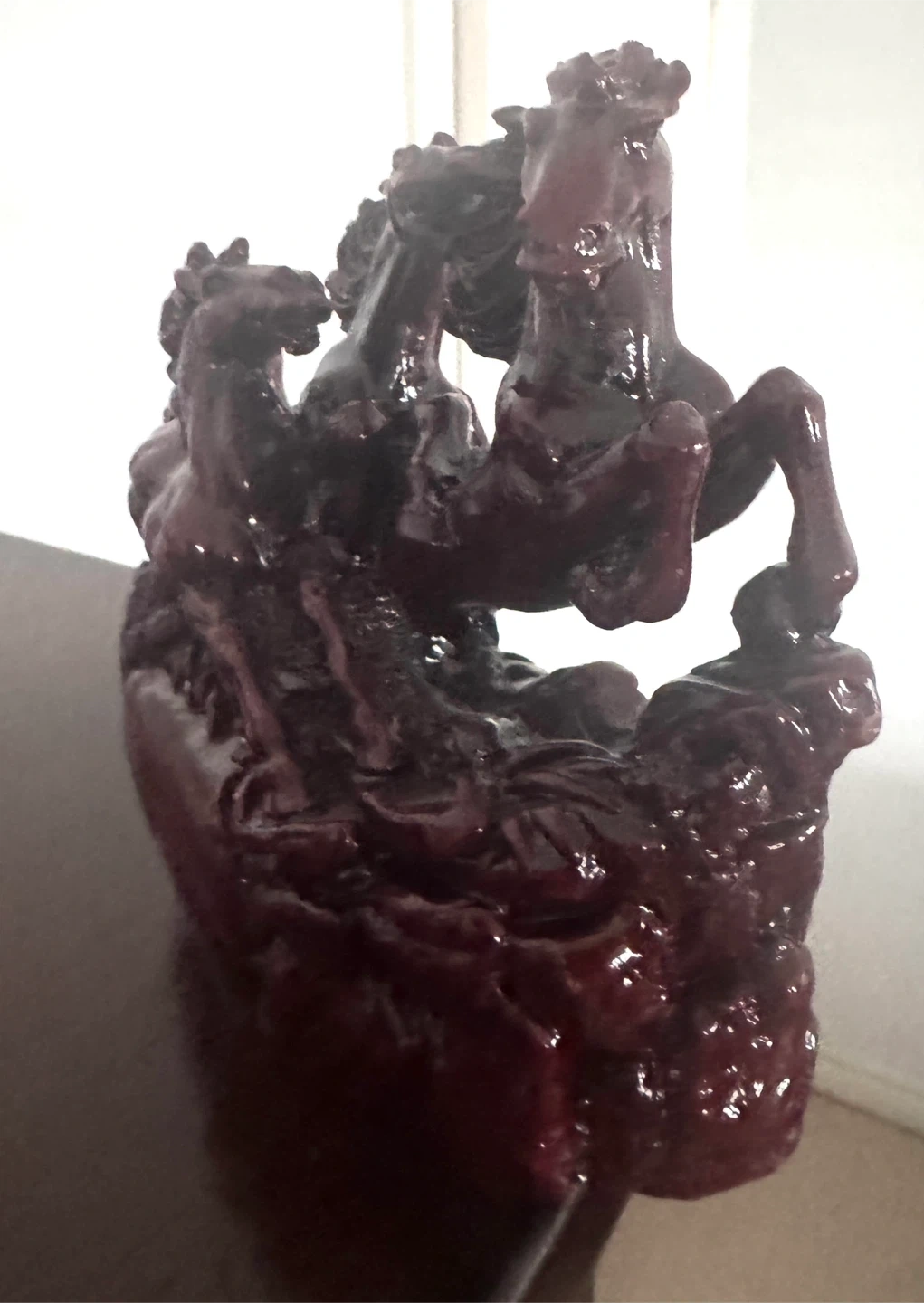 Here's a beautiful horse sculpture figurine! It has a rich, deep colour and would look great in any room, office