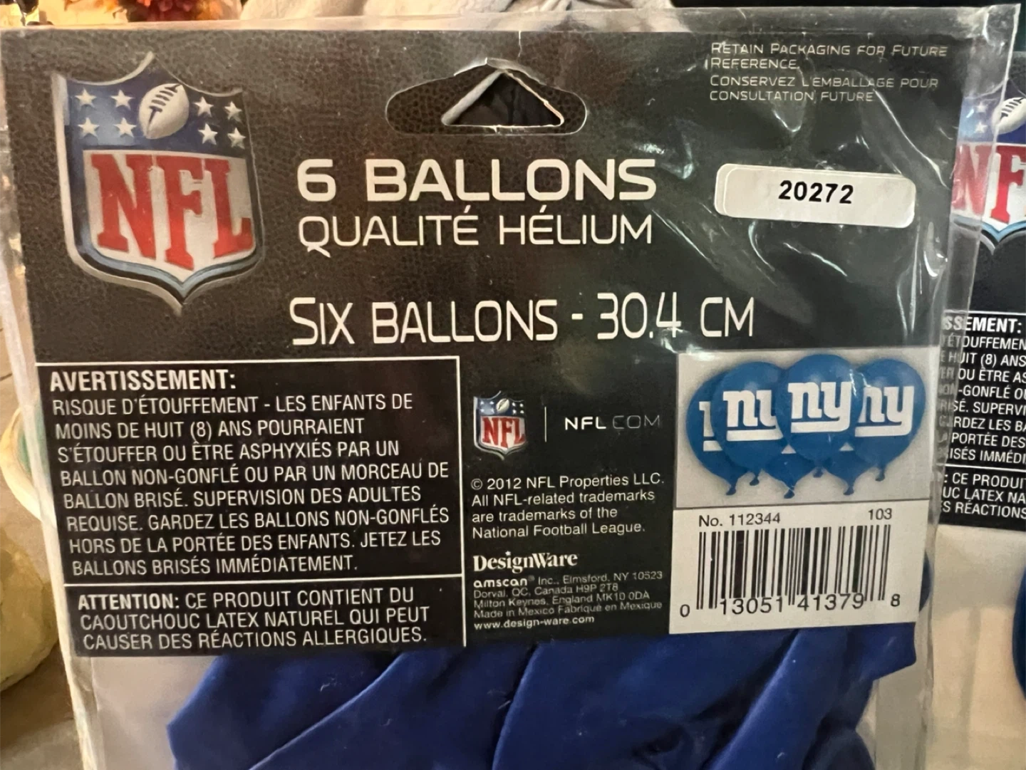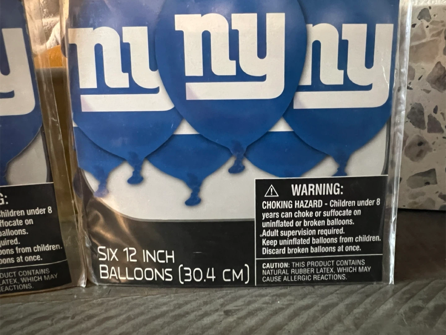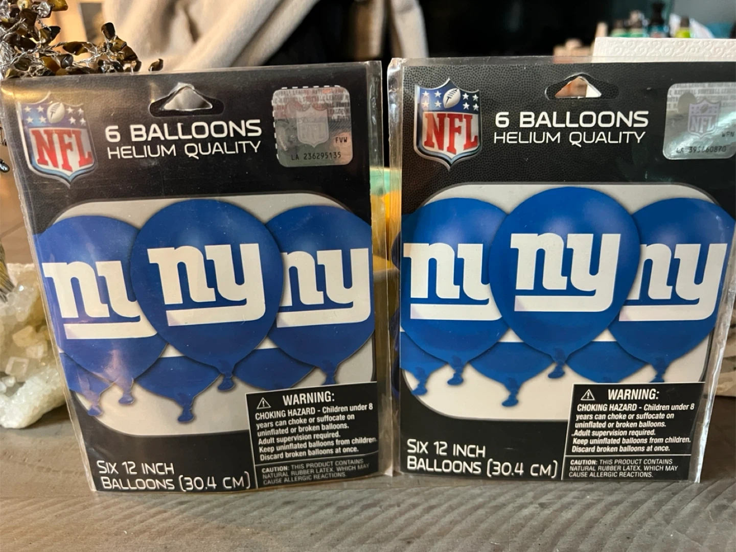 Get ready to show your team spirit with these New York Giants balloons! This package includes 12 balloons, each measuring 12 inches (30.4 cm). They're perfect for parties, game day, or any Giants-themed celebration! The balloons are helium quality and come in their original packaging