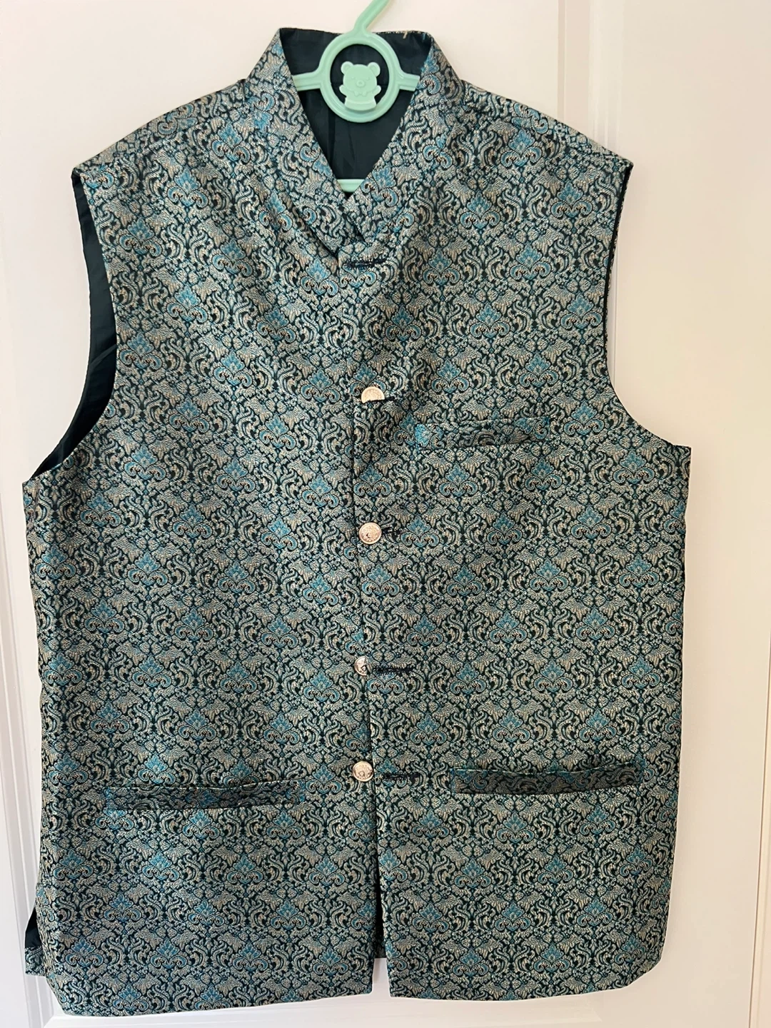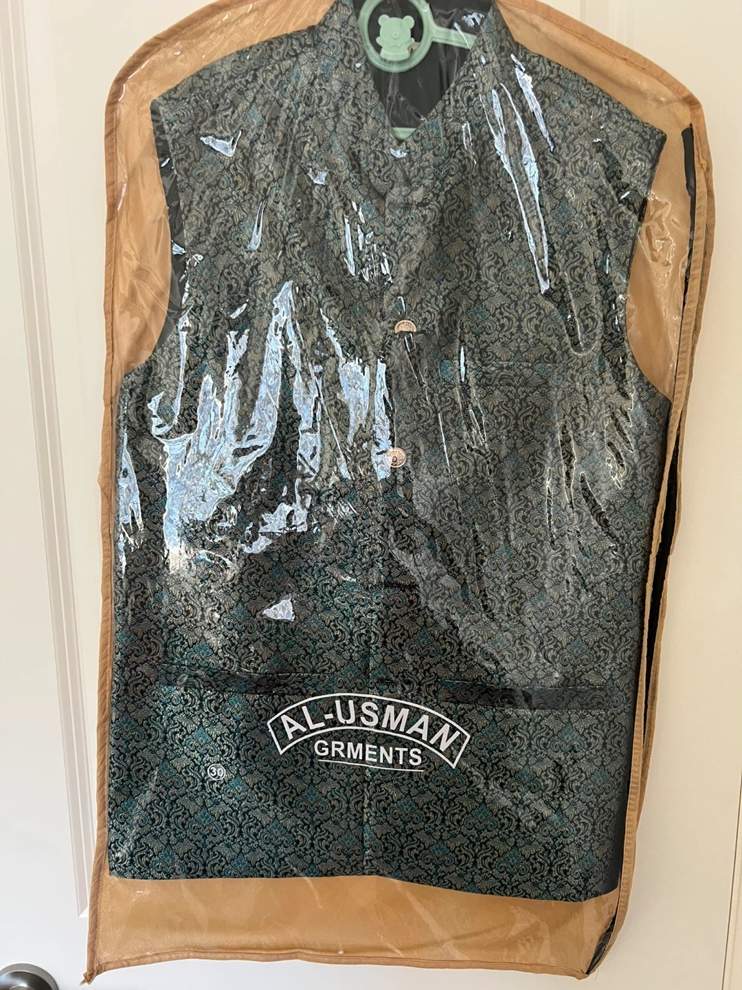 Stylish vest from Al-Usman Garments featuring a unique pattern and button-down closure. Perfect for adding a touch of elegance to any outfit!