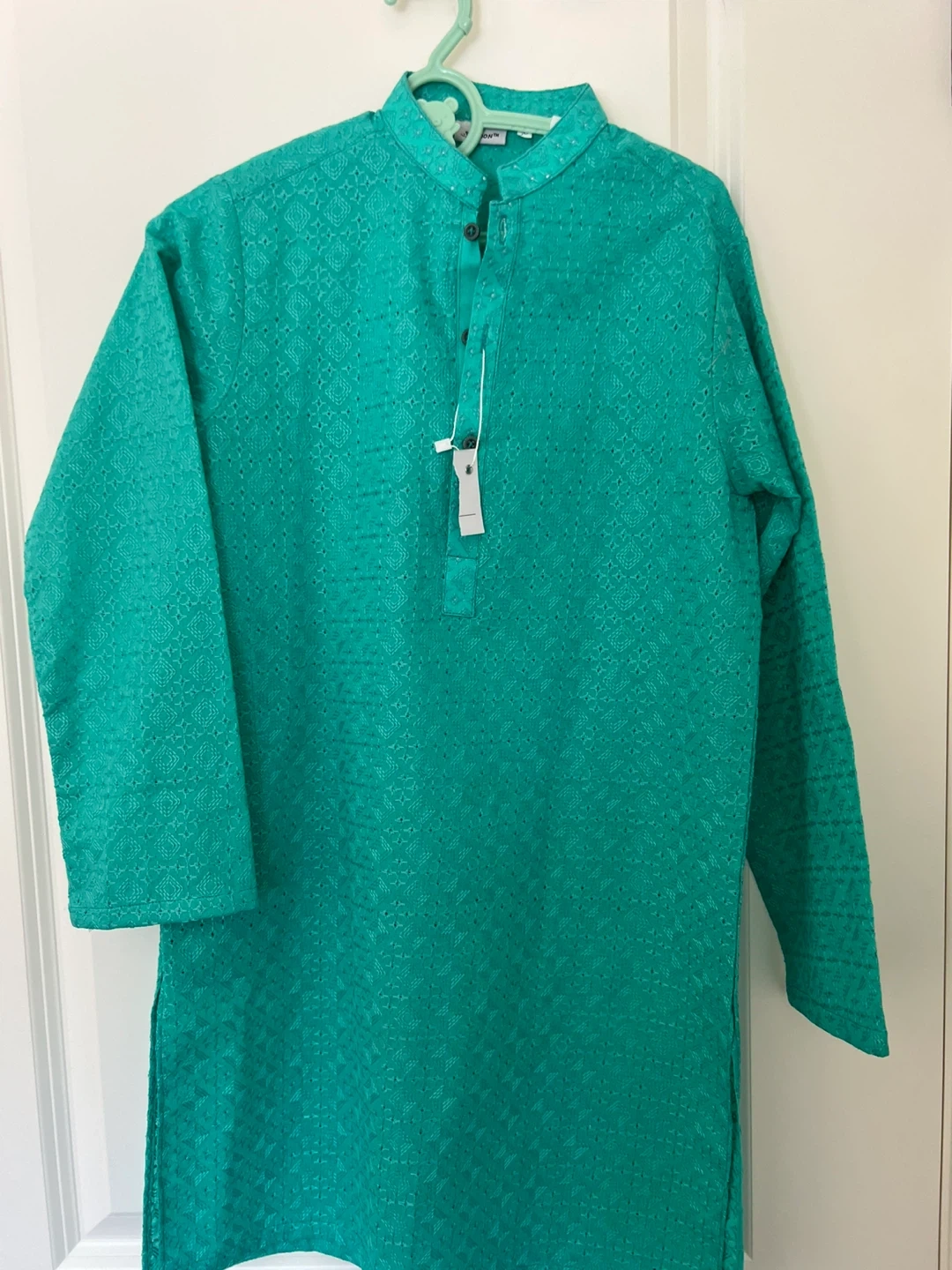 Boys' Kurta Pajama set in new condition! The set includes a green kurta and white pajama pants. Perfect for any special occasion or cultural event