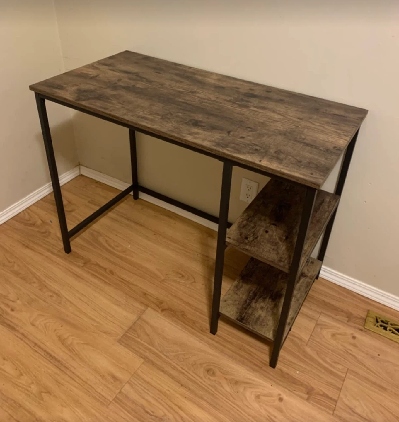 Selling a rustic brown computer desk with built-in shelves! It's in great shape and perfect for a home office or study space. Like new condition