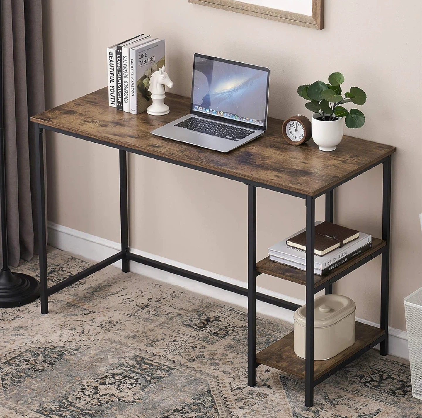 Rustic Brown Computer Desk with Shelves