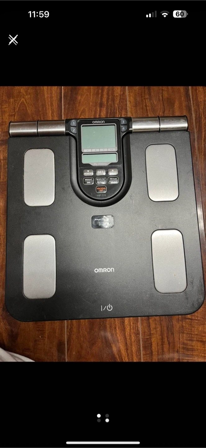 Selling an Omron Body Composition Monitor, model HBF-516. It measures weight, body fat, muscle, and body age. Great for tracking your health and fitness progress!