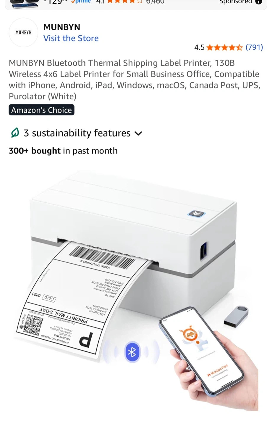 Selling a MUNBYN 130B Bluetooth Thermal Shipping Label Printer, perfect for small business or home office use! It's compatible with iPhone, Android, iPad, Windows, and macOS. Great for Canada Post, UPS, and Purolator shipping labels. It's in excellent condition and ready to go!