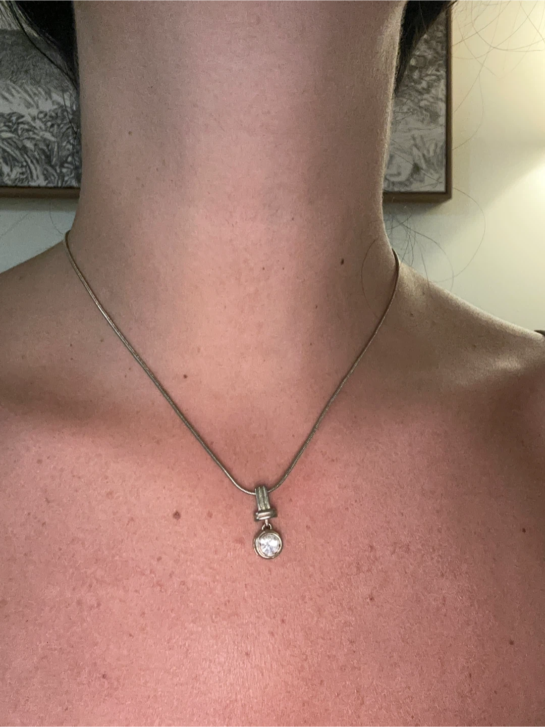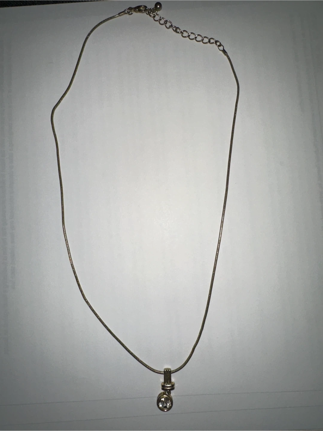 Selling a delicate gold plated pendant necklace. It has a simple and elegant design that would complement any outfit. The chain is adjustable, allowing you to customize the length to your preference