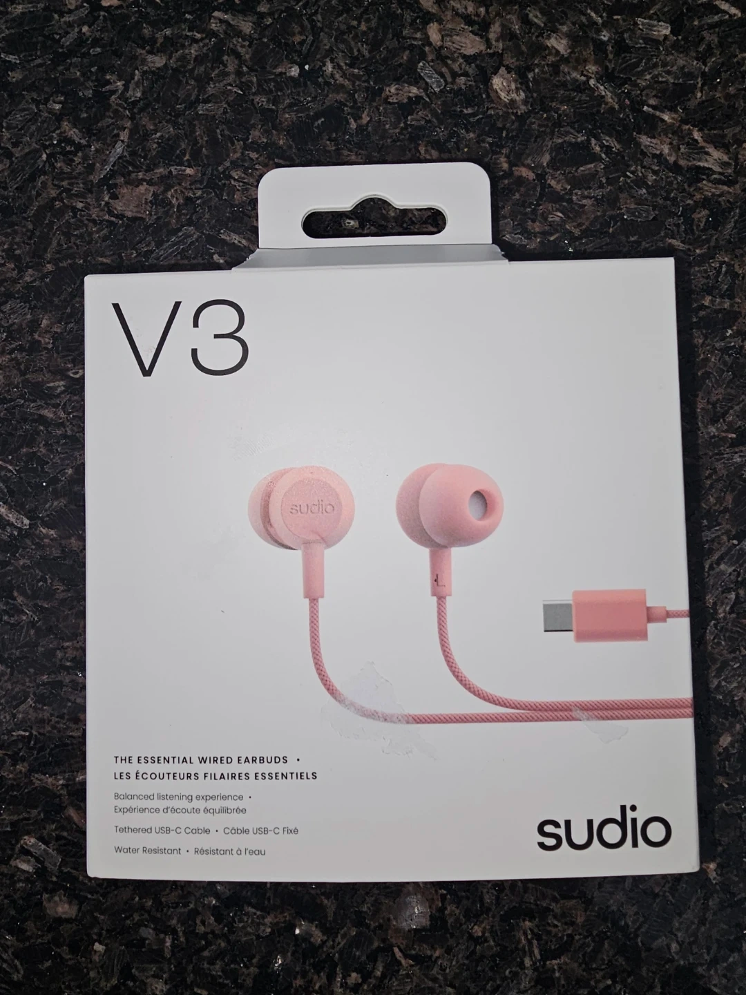 Selling a brand new pair of Sudio V3 wired earbuds! They're a lovely pink colour and come in the original packaging.