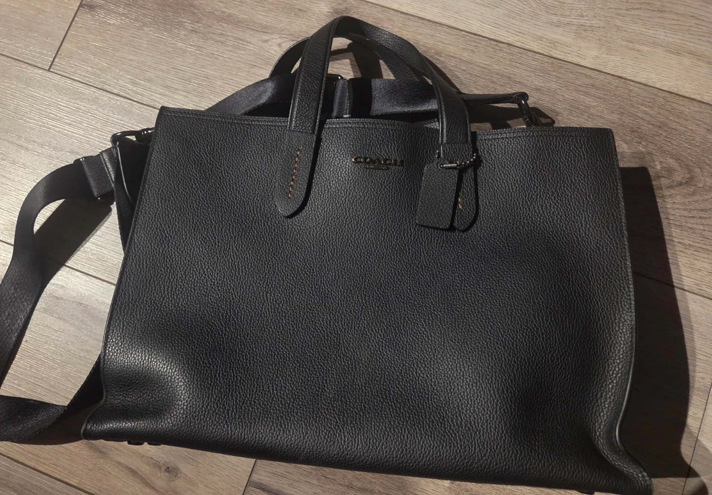Looking to sell this Coach tote bag. It's a stylish and practical bag in black leather, perfect for everyday use. The interior is a vibrant blue. It's in great condition!