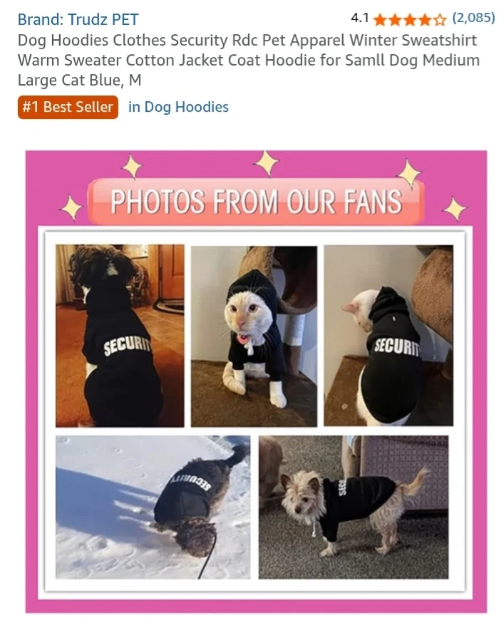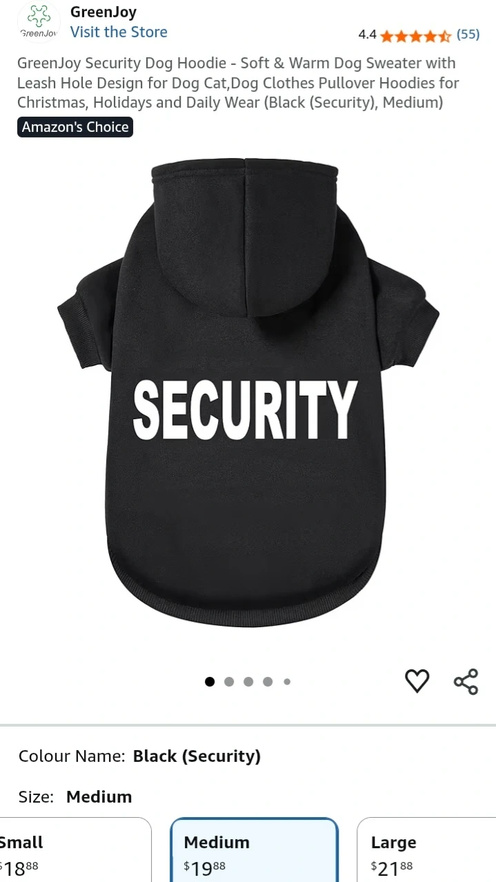 Keep your furry friend cozy with this Trudz PET dog hoodie! It's a size medium and features a 'SECURITY' design on the back. Perfect for keeping your dog warm during the cooler months