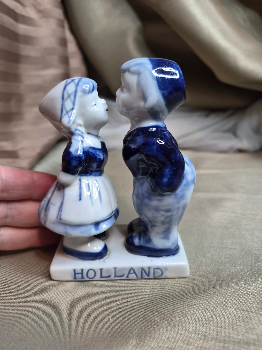So Cute 5" Holland Blue Delft Porcelain Kissing Kids Figurine