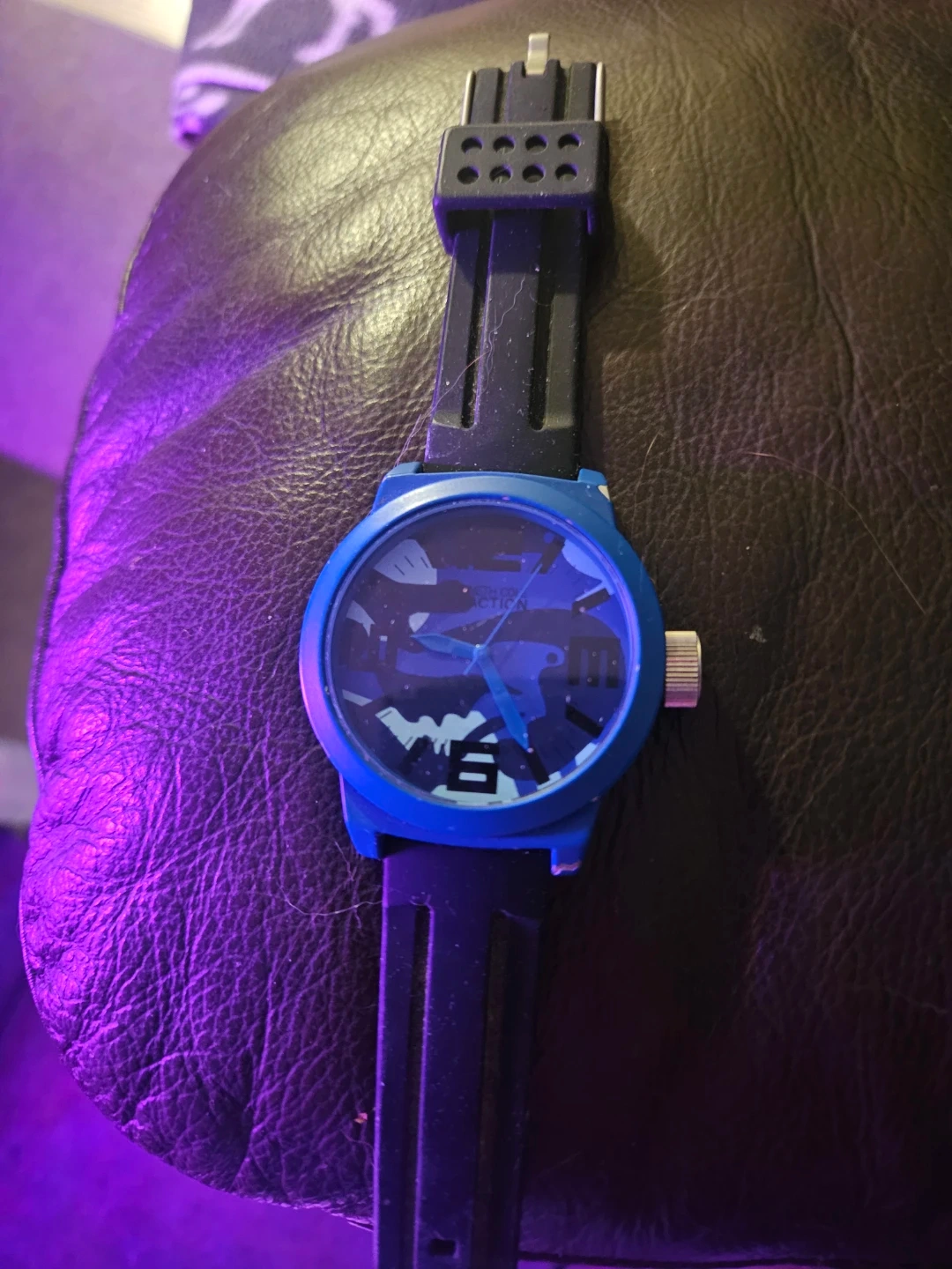 Selling a Keneth Cole reaction mens wrist watch. With a blue camo face and black silicone strap. It's in great condition and ready for a new wrist!