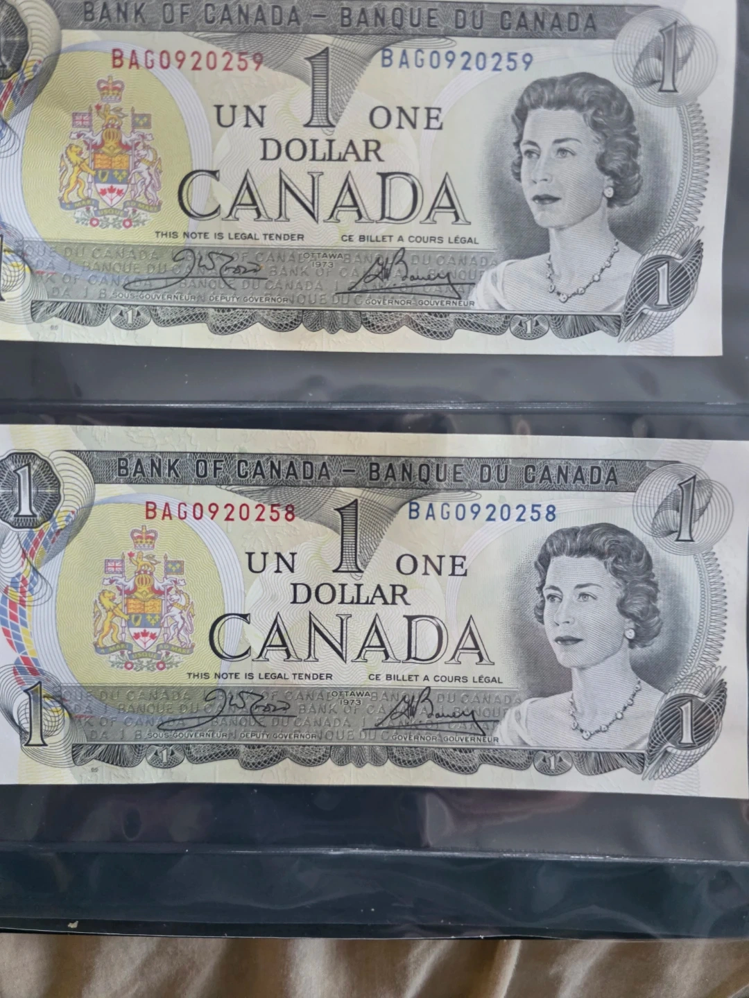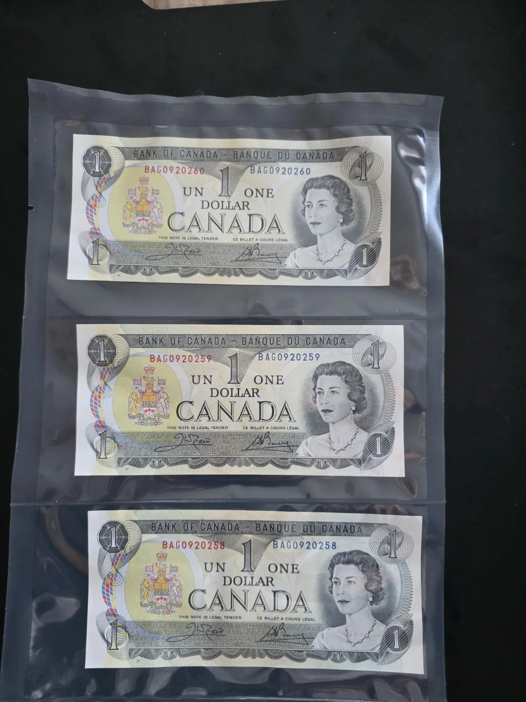Selling Canadian one dollar bills from the Bank of Canada. It features Queen Elizabeth II. A great piece of Canadian history!